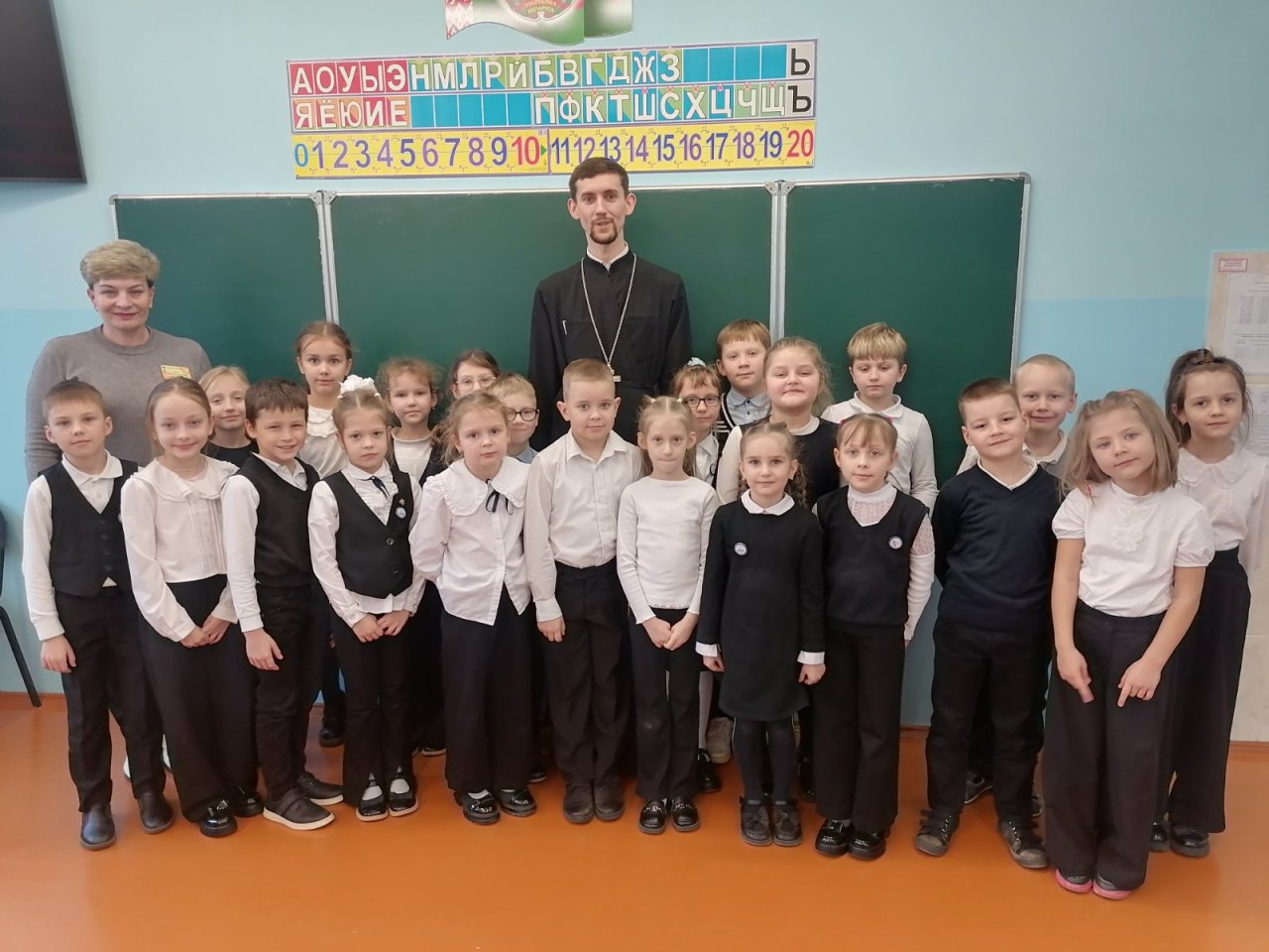 23 декабря клирик кафедрального собора Покрова Пресвятой Богородицы г. Гродно иерей Димитрий Сидляревич провёл с учащимися 2 класса ГУО «Средняя школа № 42» г. Гродно беседу на тему «Рождество Христово».