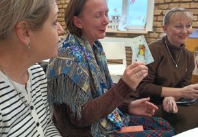 Также преподаватели обменялись опытом организации предпраздничных ярмарок с участием родителей и идеями по изготовлению сувениров. В качестве подарка коллегам были переданы методические разработки: «Подготовка к первой исповеди» (цикл из 14 занятий) и «Цикл занятий семейного клуба для детей и родителей» (10 занятий).