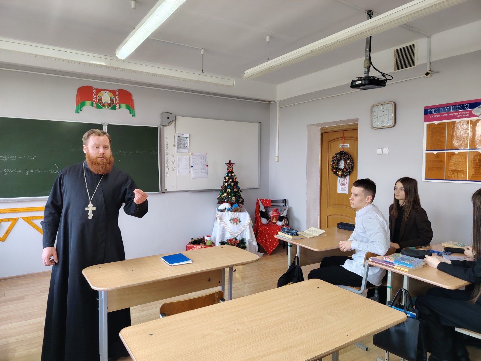 17 декабря клирик кафедрального собора святых апостолов Петра и Павла г. Волковыска иерей Антоний Федосеев провел встречу со старшеклассниками государственного учреждения образования «Средняя школа № 1 г. Волковыска».