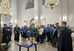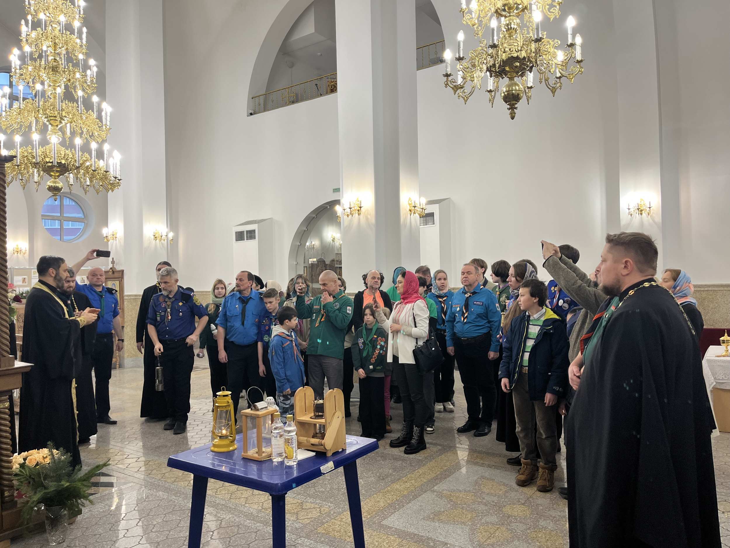 По завершении торжественного молебна, состоялась передача Вифлеемского огоня, зажженного от лампады в храме Рождества Христова в Вифлееме. После молебна участники собрались вместе для проведения круглого стола.