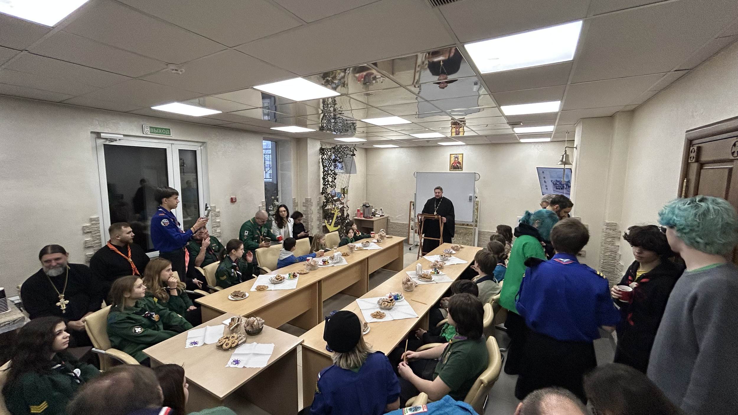 Во встрече приняли участие председатель Синодального отдела по делам молодежи Белорусской Православной Церкви иерей Дмитрий Бовкунович, настоятель прихода храма иконы Божией Материи «Неупиваемая Чаша» протоиерей Дионисий Пясецкий, представители Белорусской республиканской скаутской ассоциации, прихожане храма, а также представители Братства православных следопытов из России, которое является структурным подразделением Синодального отдела по делам молодежи Русской Православной Церкви.