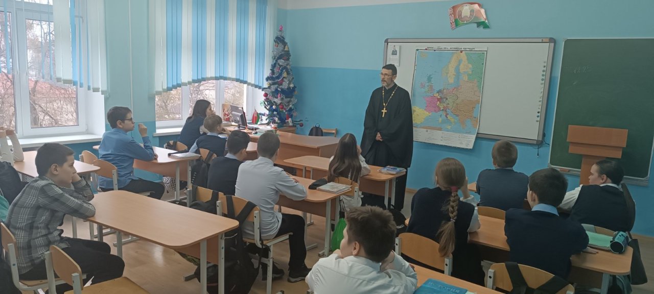 Иерей Михаил Перец посетил среднюю школу № 2 имени В. Ю. Саяпина г. Гродно
