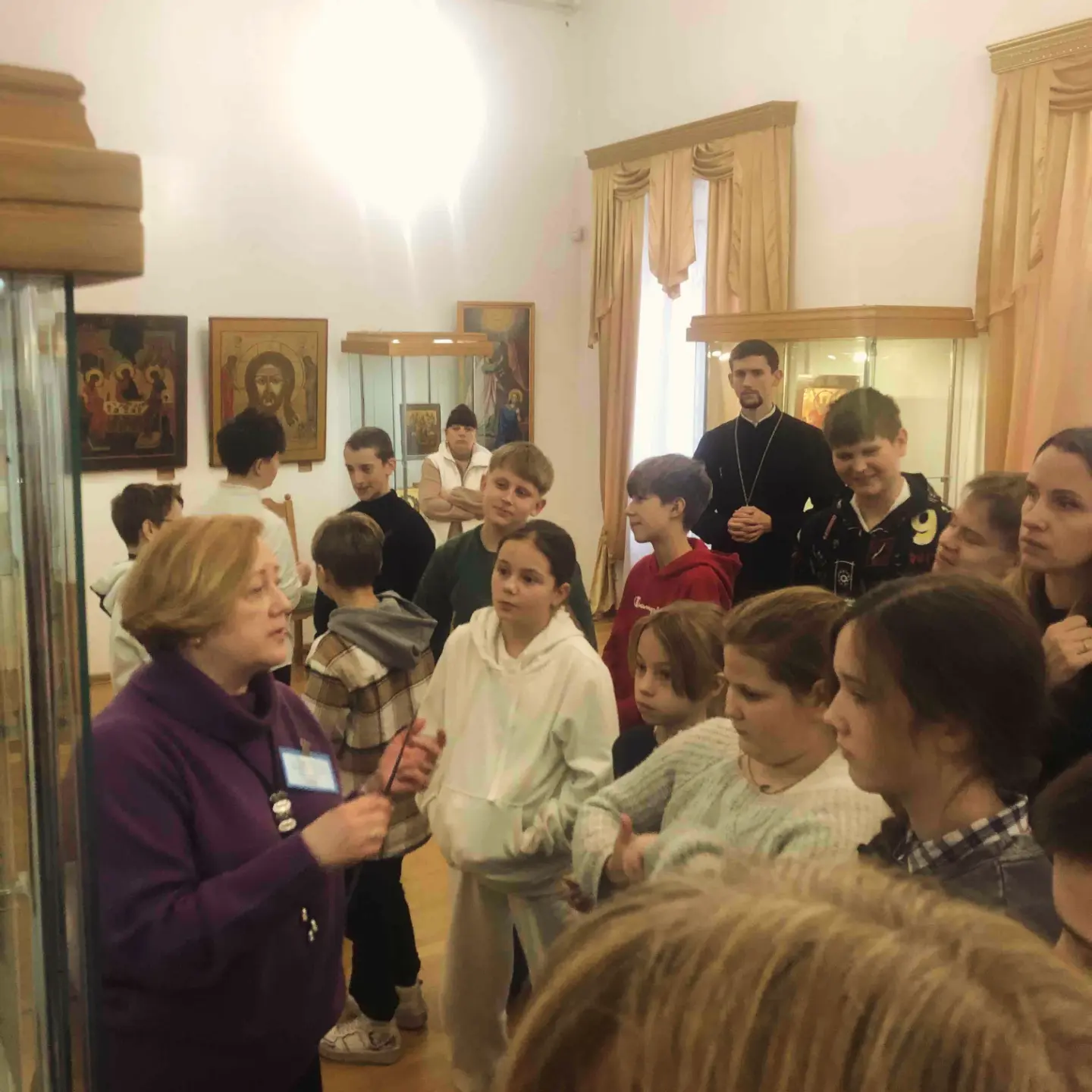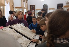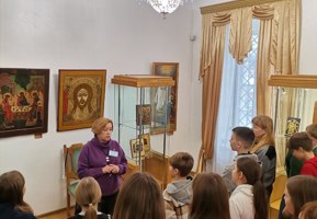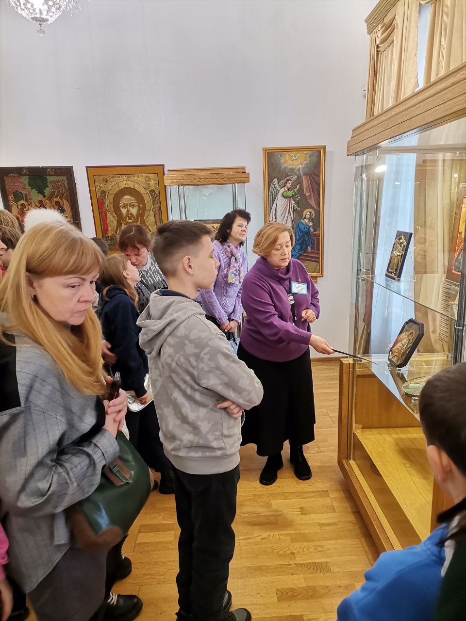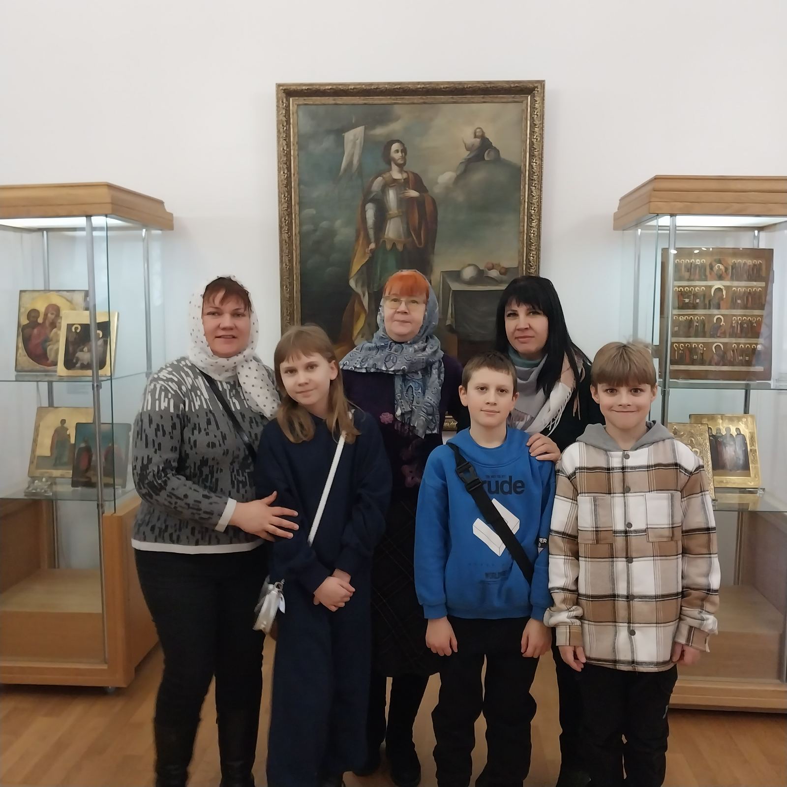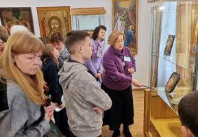 Воспитанники воскресной школы кафедрального собора вместе с родителями и педагогами посетили выставку икон «Небесные покровители»