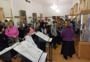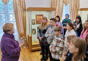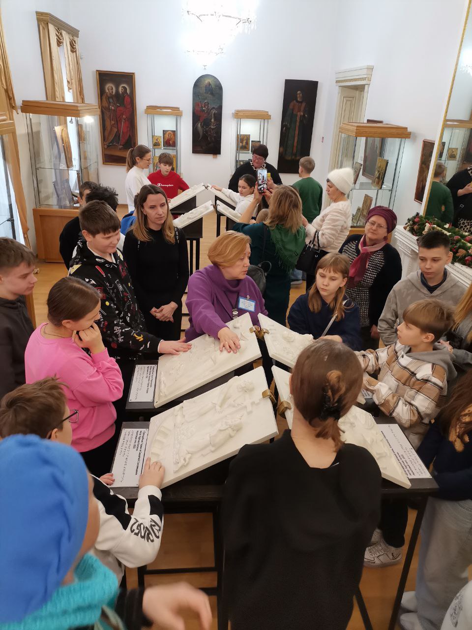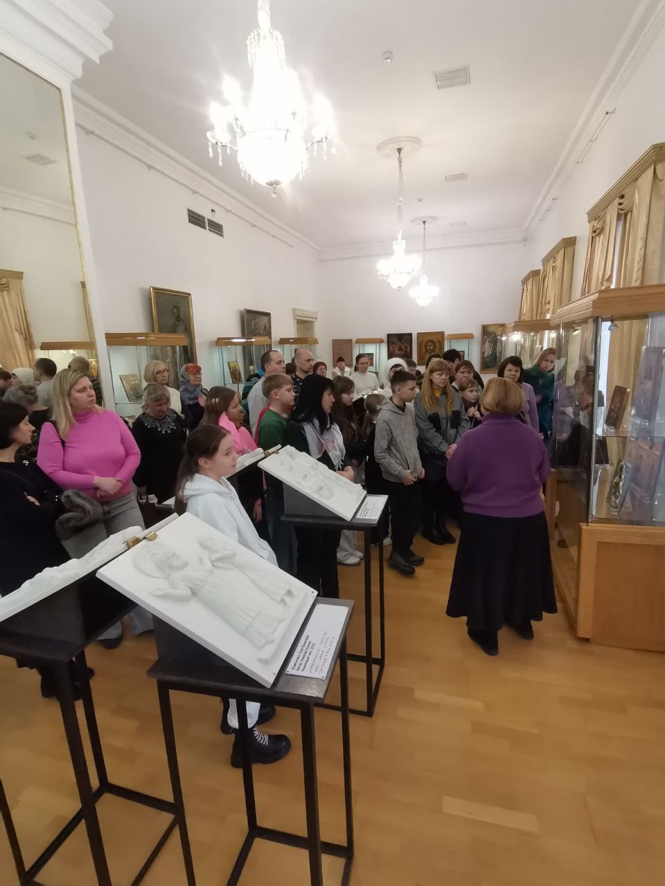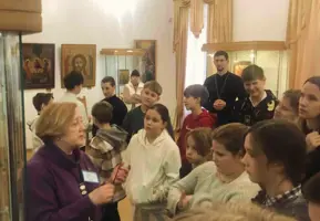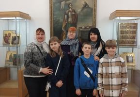 Воспитанники воскресной школы кафедрального собора вместе с родителями и педагогами посетили выставку икон «Небесные покровители»