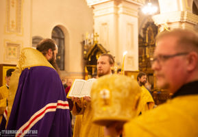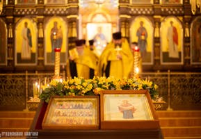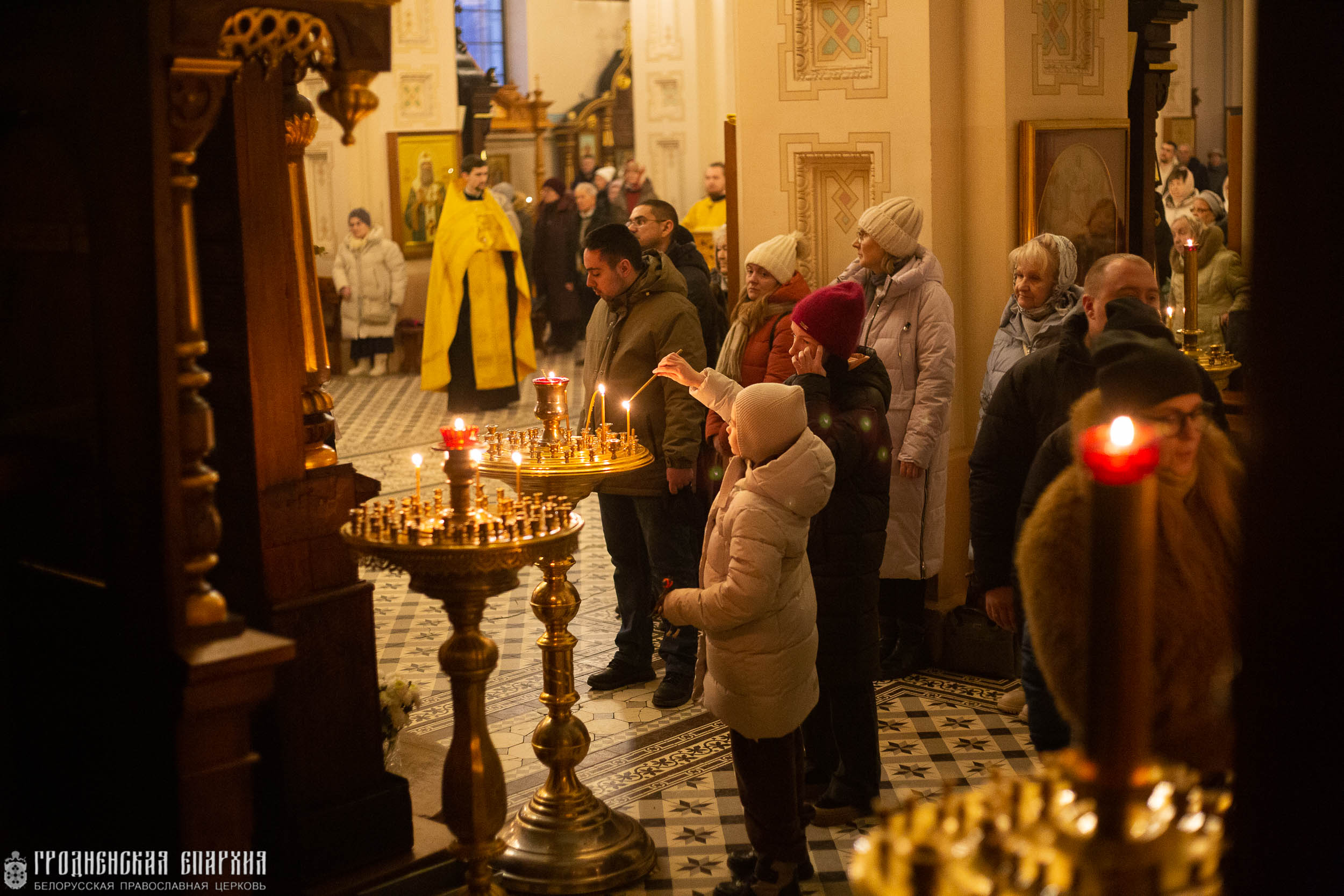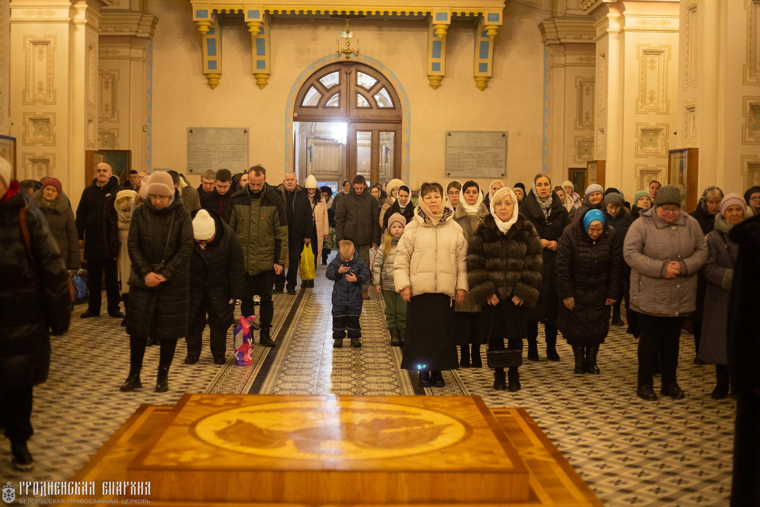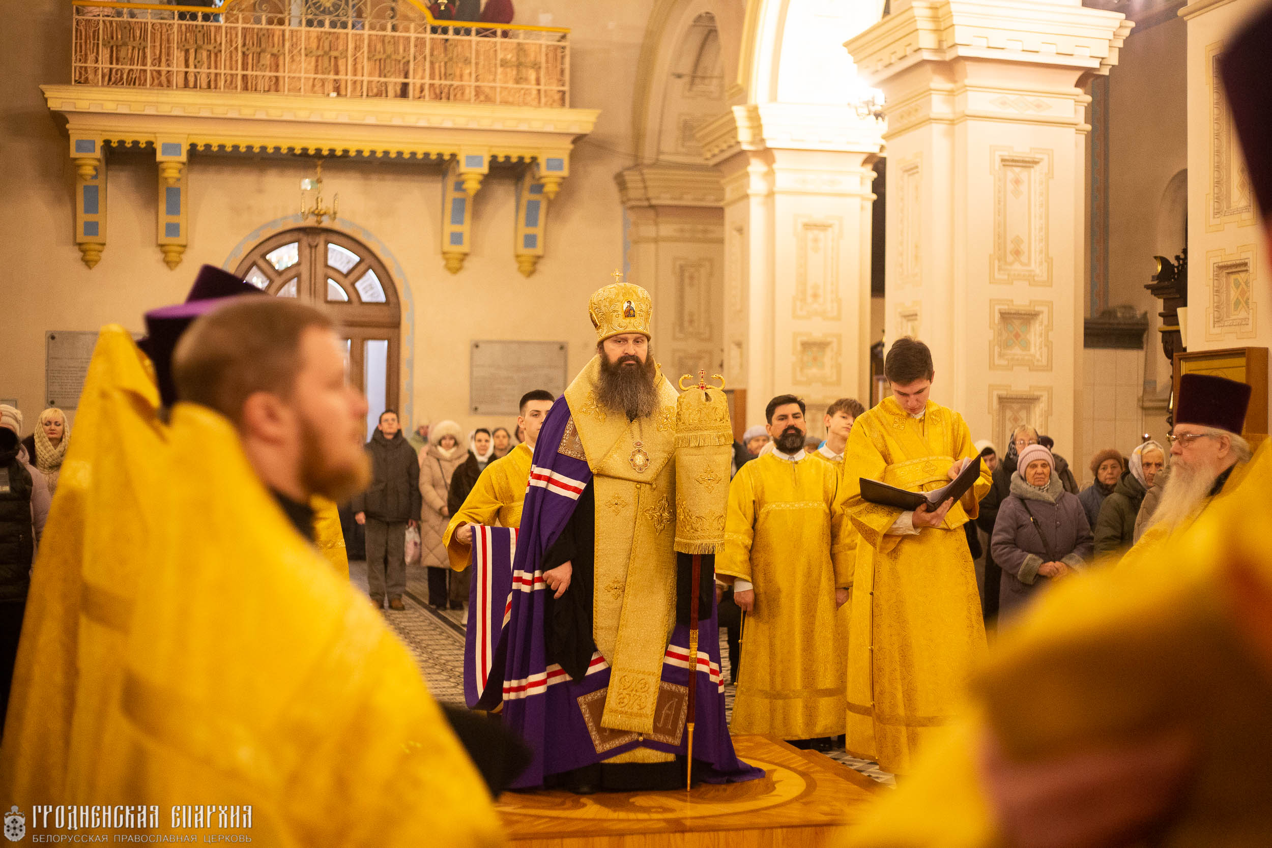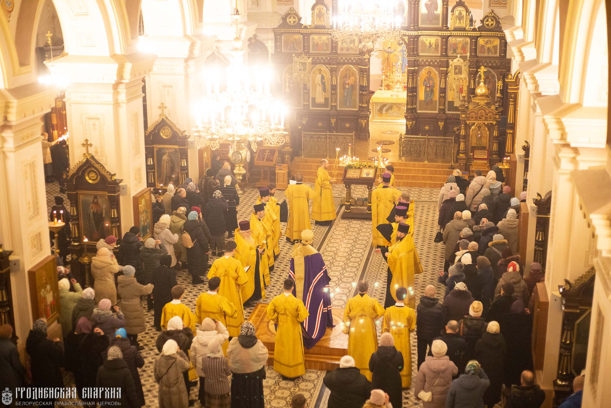 Его Высопреосвященству сослужили: протоиерей Григорий Беляцкий, настоятель кафедрального собора Покрова Пресвятой Богородицы; протоиерей Андрей Бондаренко, духовник Гродненской епархии; иерей Александр Гук, руководитель отдела по церковной благотворительности и социальному служению; клирики кафедрального собора.