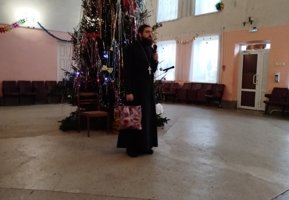 Священнослужитель поздравил присутствующих с наступающими праздниками новолетия и Рождества Христова, а также вручил детям сладкие подарки.
