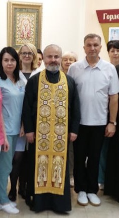 В фойе центра, в присутствии главного врача Зверко Владимира Леонтьевича и медицинского персонала, священнослужители совершили молебен и освятили установленную здесь икону Пресвятой Богородицы «Помощница в родах».
