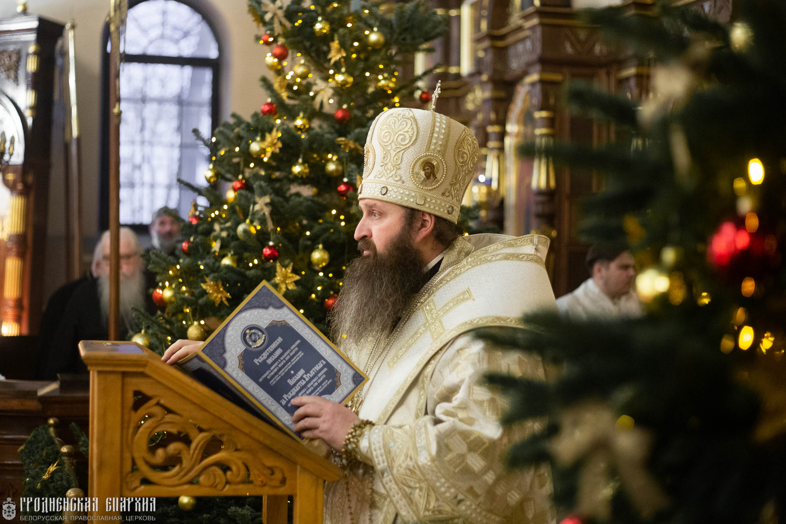 После чтения Евангелия архиепископ Антоний огласил Рождественское послание Митрополита Минского и Заславского Вениамина, Патриаршего Экзарха всея Беларуси.