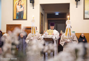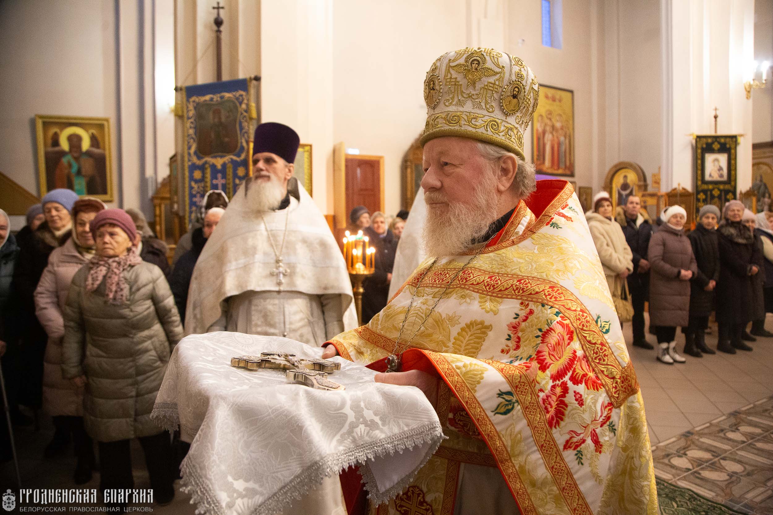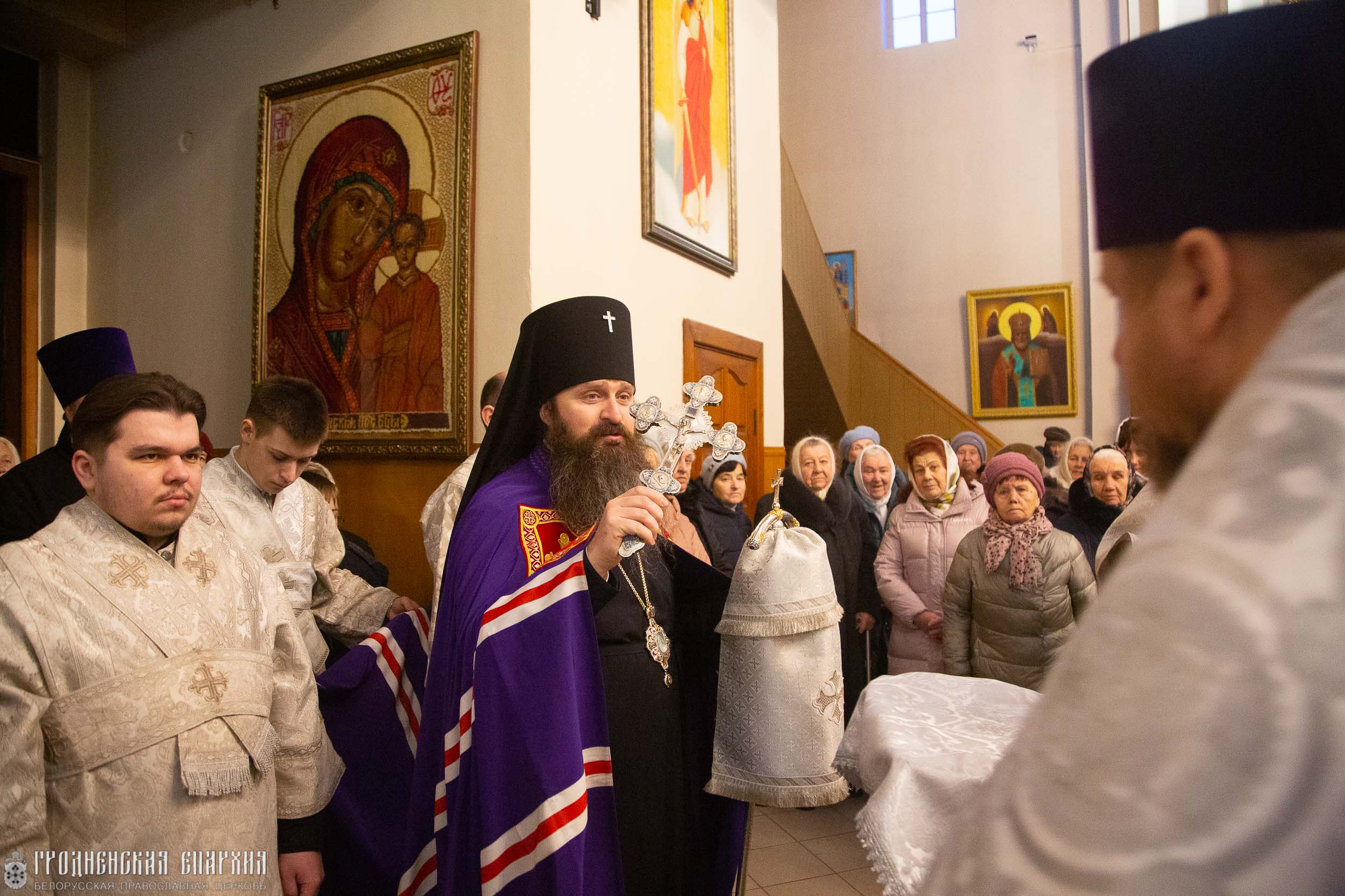 Архипастырю сослужили: протоиерей Николай Лабынько, Секретарь Гродненской епархии; иерей Александр Юзва, благочинный Волковысского церковного округа; архимандрит Василий (Коржич), Старший духовник Гродненской епархии, настоятель прихода кафедрального собора святых апостолов Петра и Павла г. Волковыска; протоиерей Виктор Колосовский, духовник Гродненской епархии, настоятель прихода храма Святой Живоначальной Троицы г.п. Россь Волковысского района; иерей Димитрий Белоцкий, настоятель прихода храма Благовещения Пресвятой Богородицы города Волковыска; иерей Сергий Дешук, настоятель прихода храма святителя Николая Чудотворца г. Волковыска; иерей Александр Богдан, клирик прихода кафедрального собора святых апостолов Петра и Павла г. Волковыска.