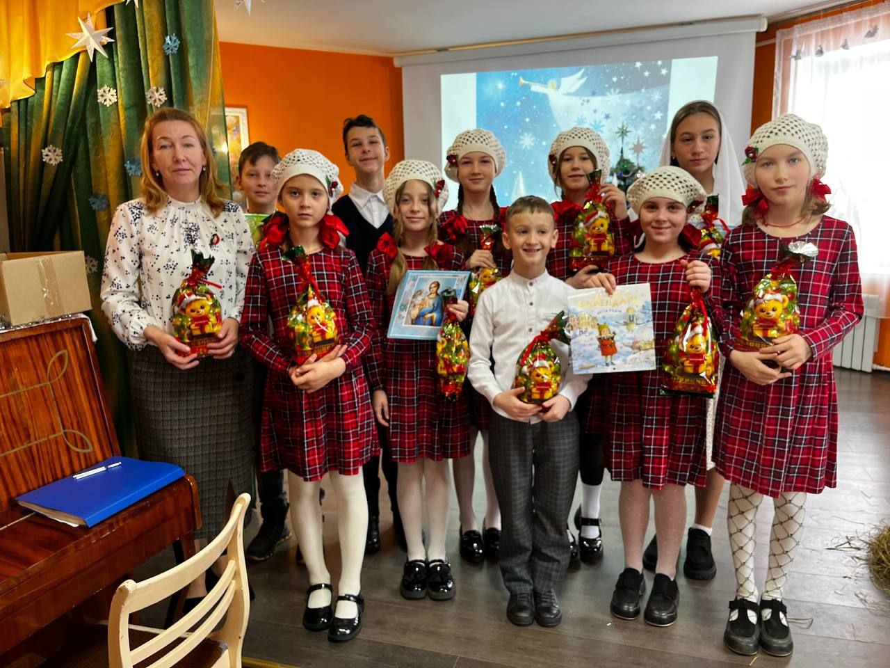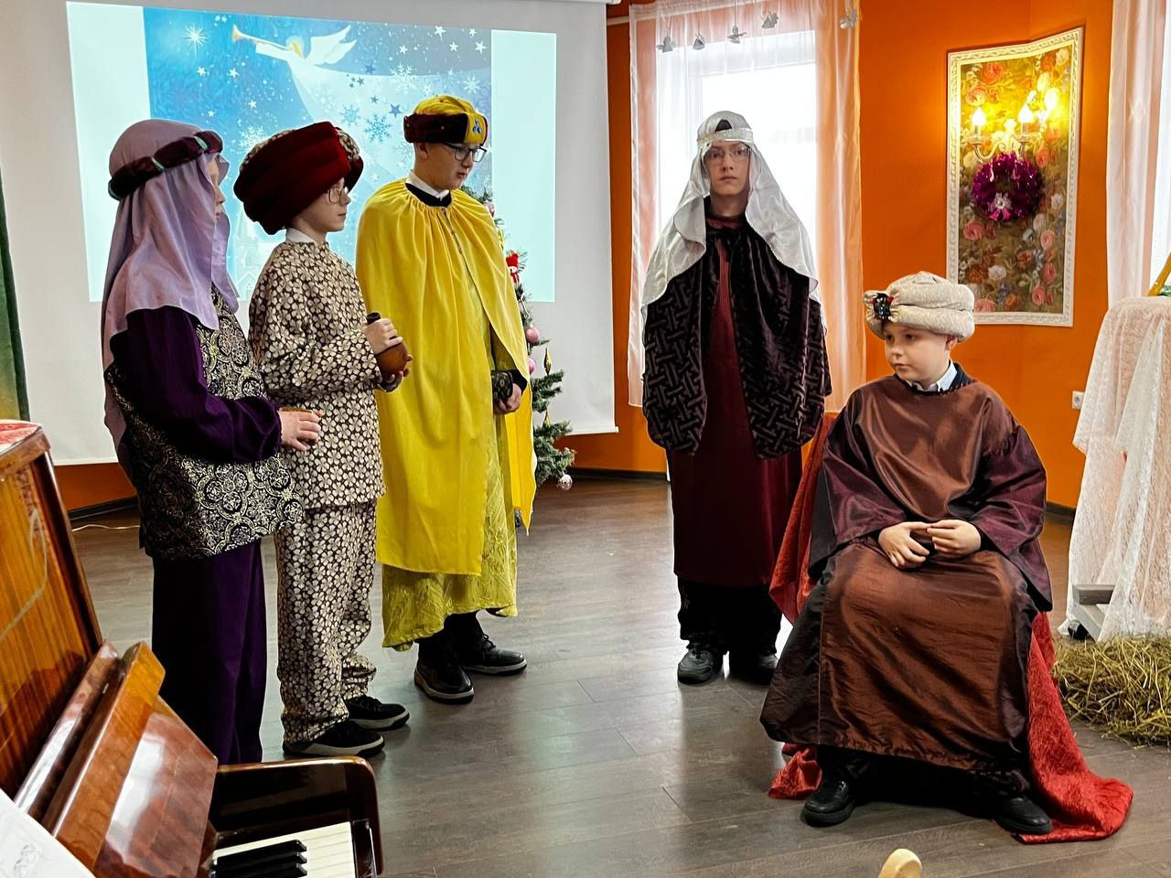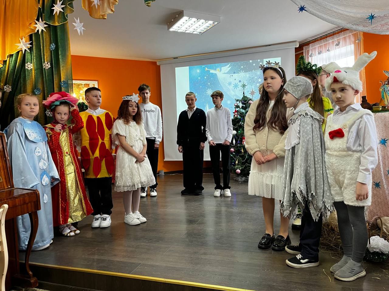После праздничного богослужения родители и дети собрались в здании воскресной школы, чтобы насладиться удивительным Рождественским представлением.