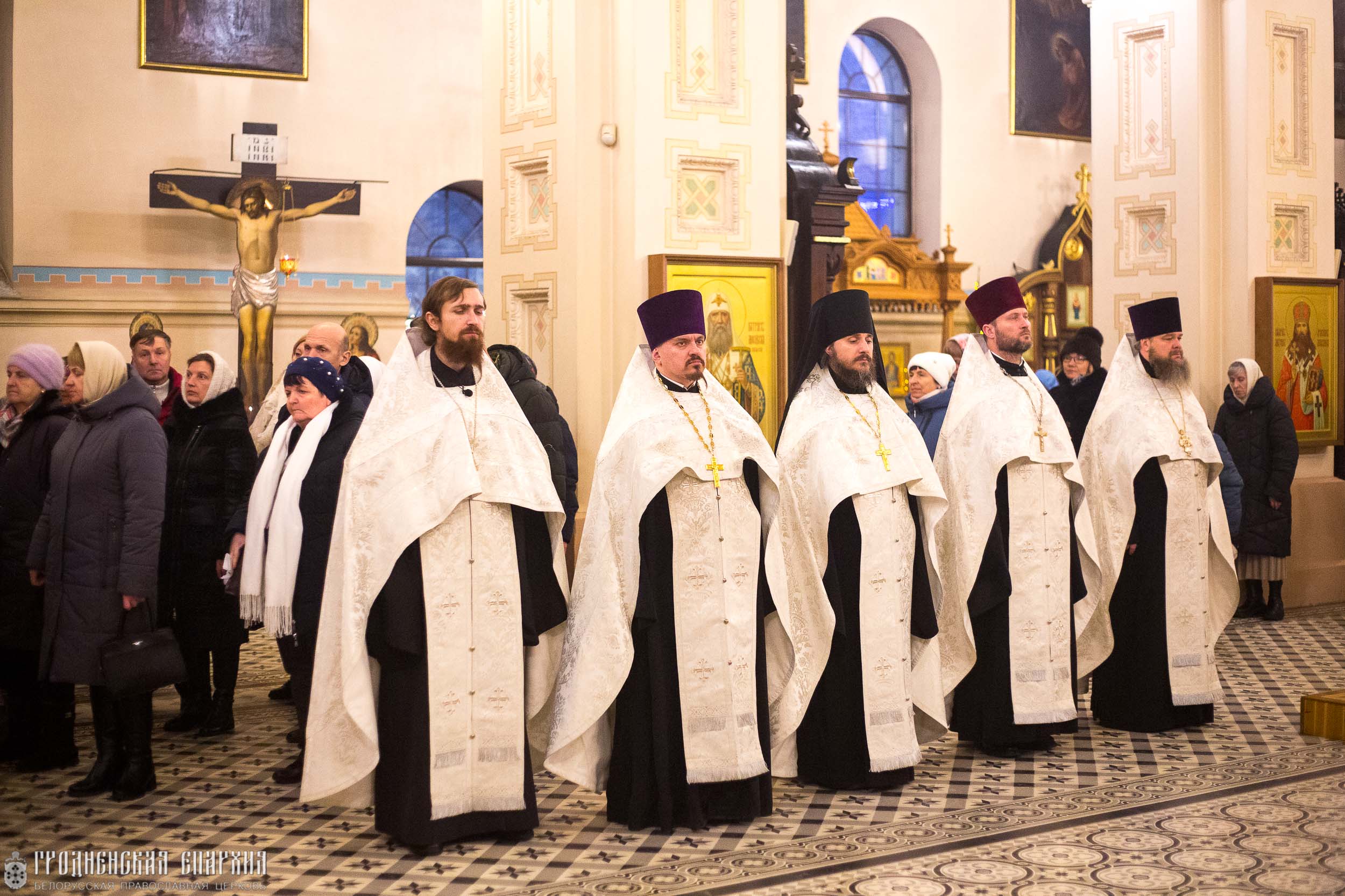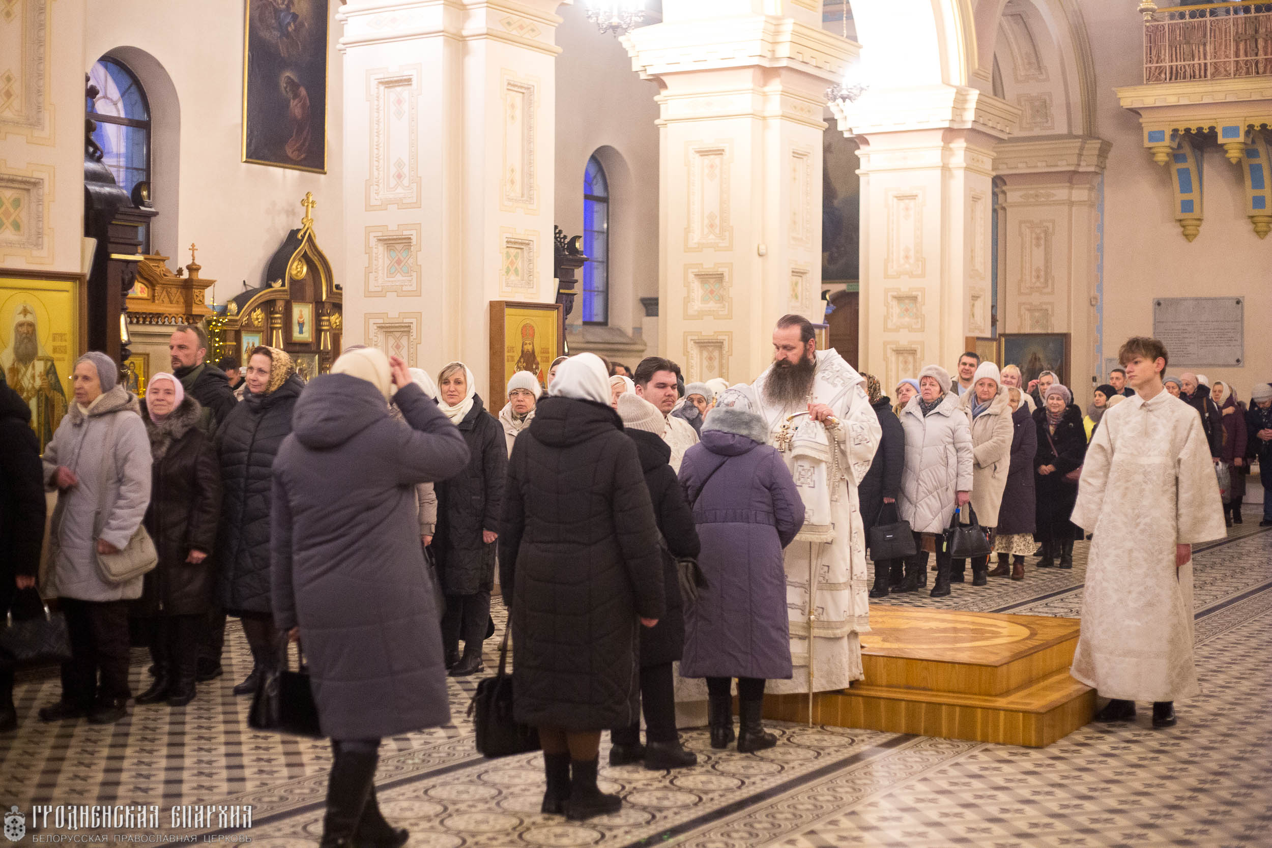 Его Высопреосвященству сослужили: протоиерей Григорий Беляцкий, настоятель кафедрального собора Покрова Пресвятой Богородицы; протоиерей Андрей Бондаренко, духовник Гродненской епархии; иерей Александр Гук, руководитель отдела по церковной благотворительности и социальному служению; клирики кафедрального собора.