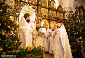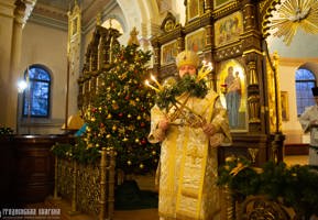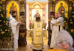 По отпусте Божественной литургии архиепископ Антоний и священнослужители совершили славление празднику Рождества Христова.