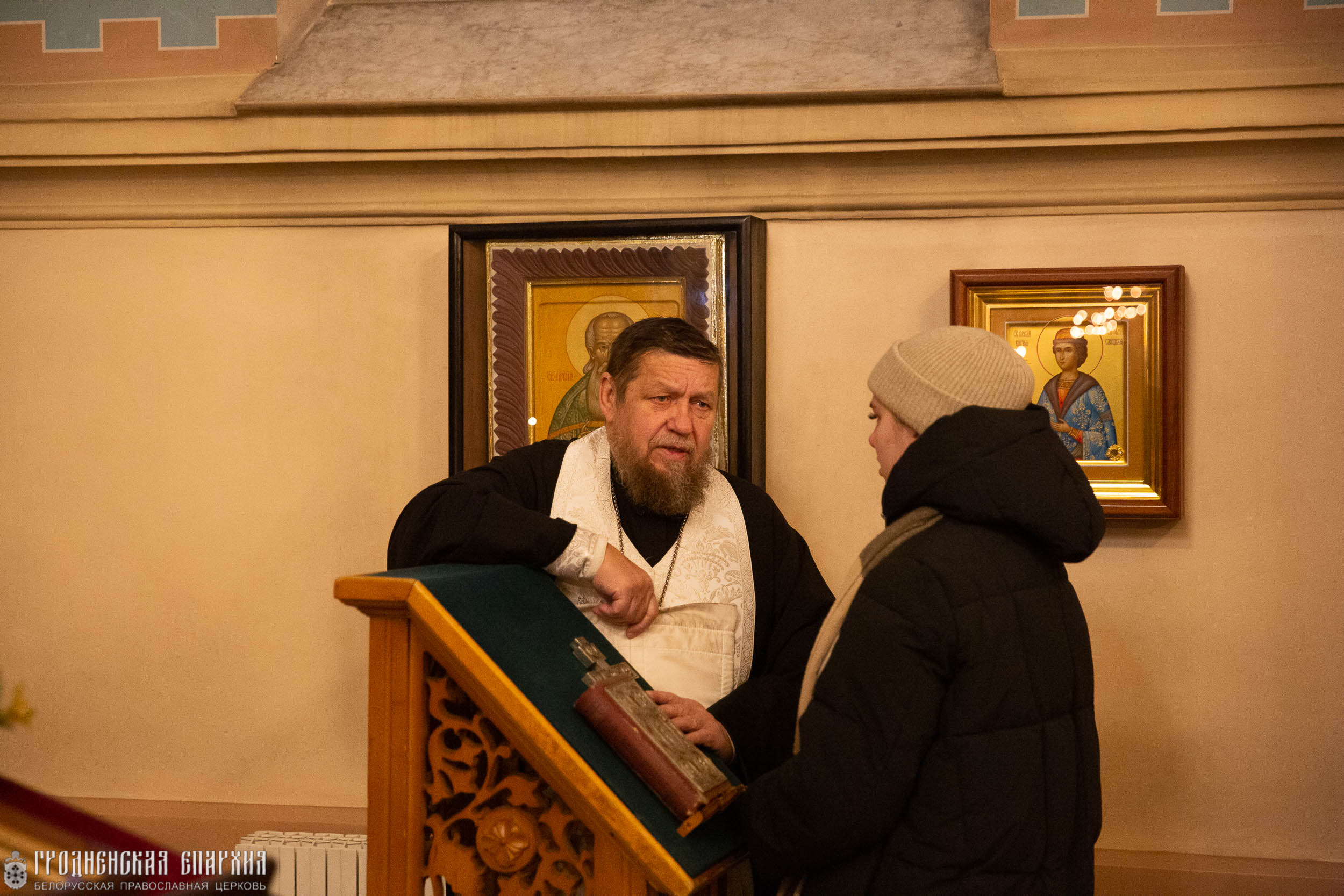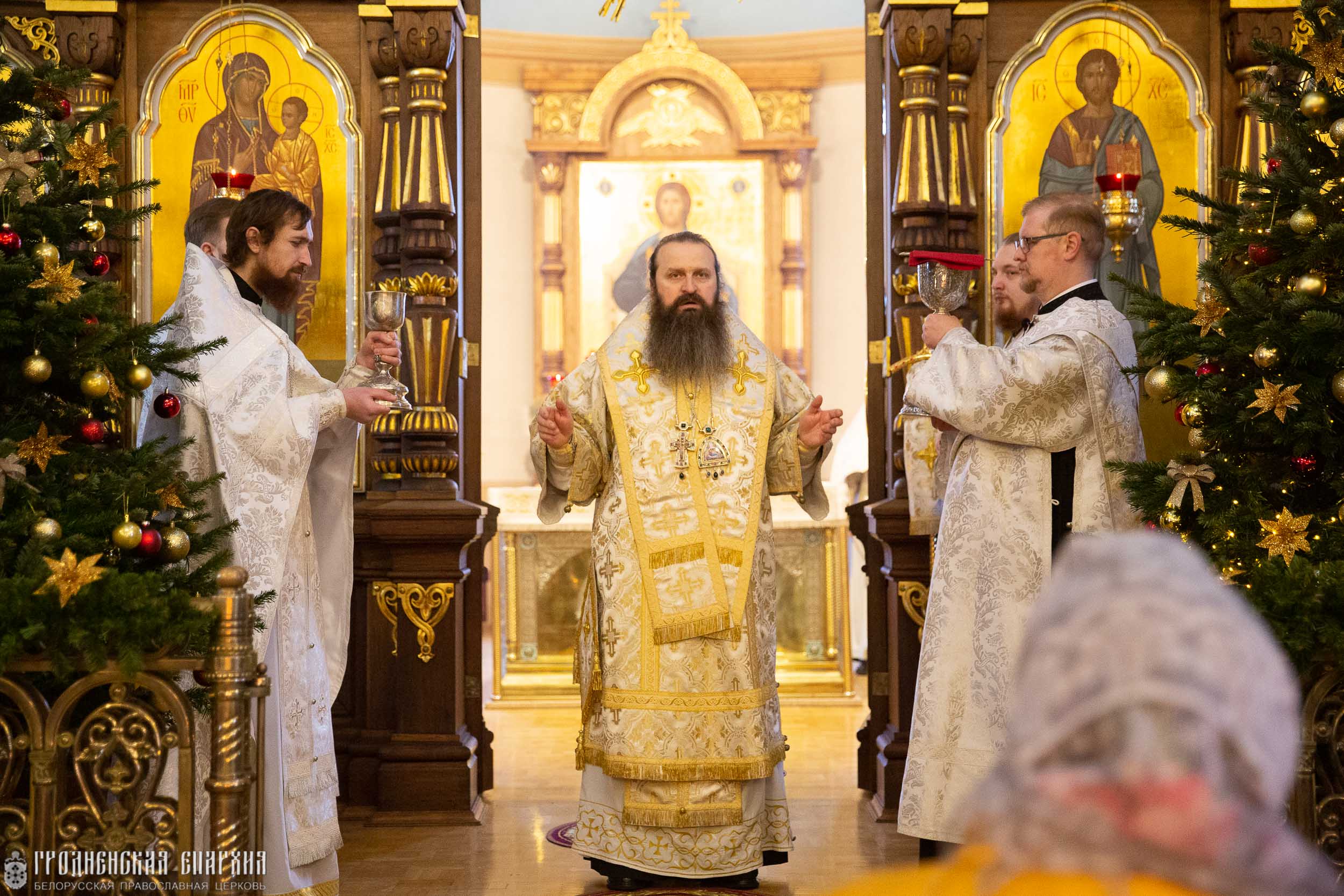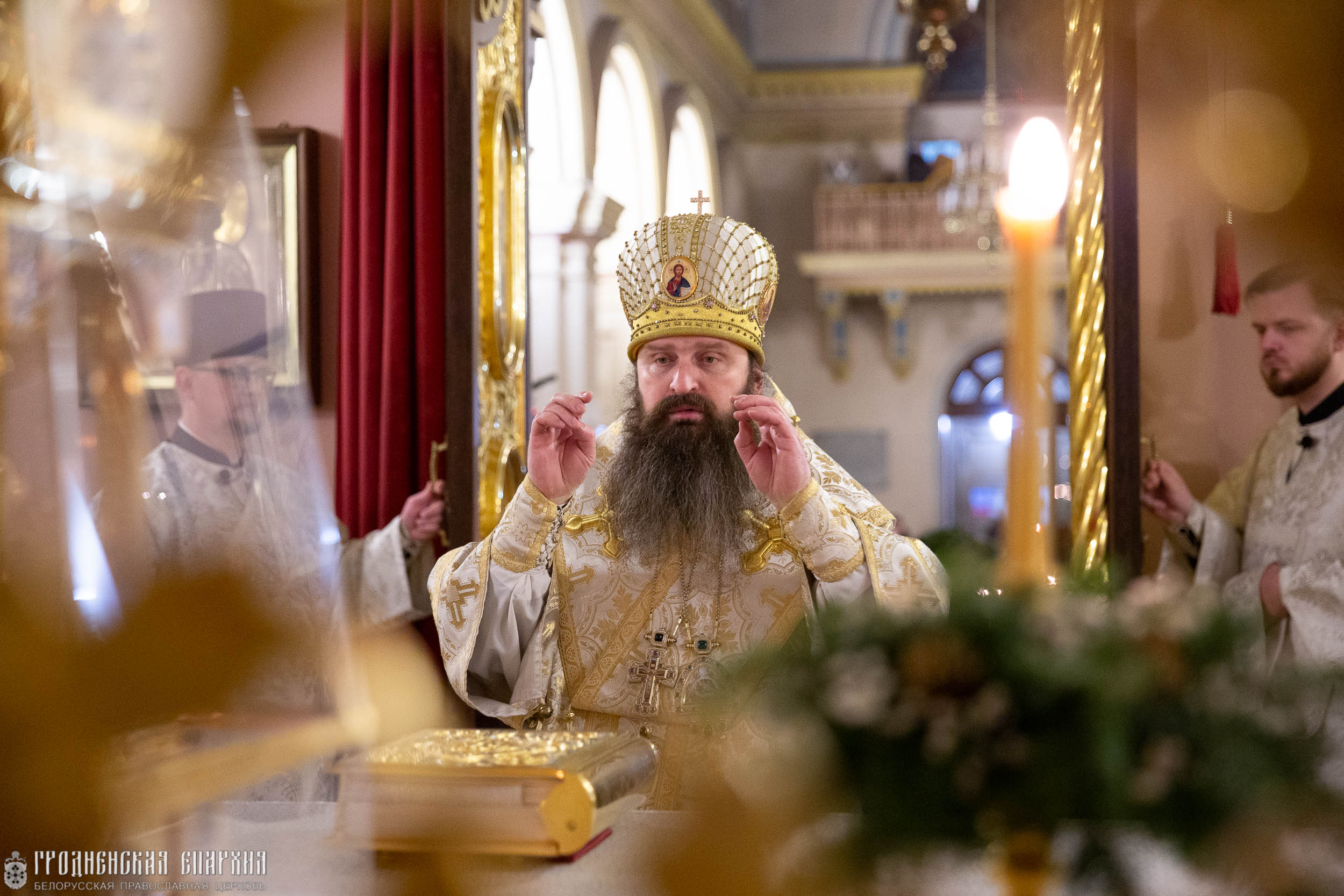 Его Высокопреосвященству сослужили: протоиерей Григорий Беляцкий, настоятель кафедрального собора Покрова Пресвятой Богородицы; протоиерей Андрей Бондаренко, духовник Гродненской епархии и клирика кафедрального собора.