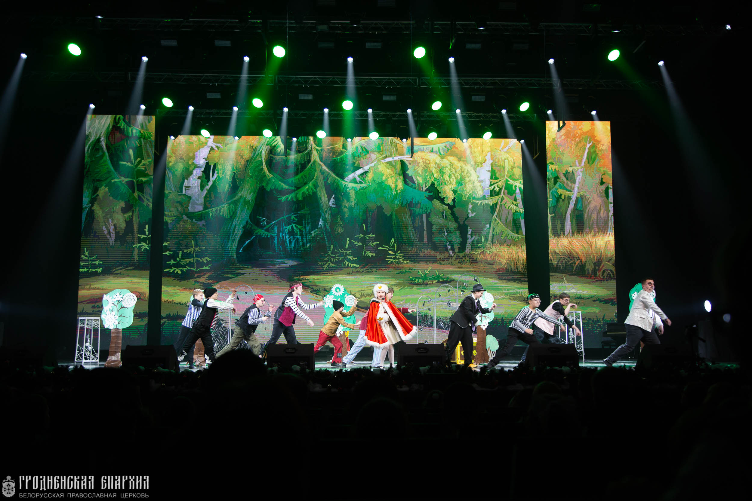 Затем в концертном зале была представлена главная часть рождественского торжества – театрализованное представление «Снежная королева» по одноименной сказке Ханса Кристиана Андерсена в оригинальном переводе Анны и Петра Ганзен без позднейших купюр, связанных с христианскими мотивами в первоначальном авторском тексте. Постановку исполнили представители творческих коллективов государственного учреждения образования «Гимназия №5 имени В.С. Короткевича г. Гродно» совместно с воспитанниками приходских воскресных школ Гродненской епархии.