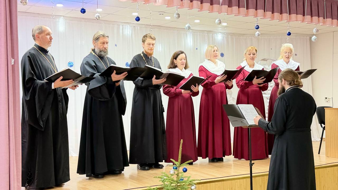 В продолжение встречи в актовом зале пансионата выступил сводный хор семей духовенства Щучинского благочиния, исполнивший рождественские колядки и многолетие.