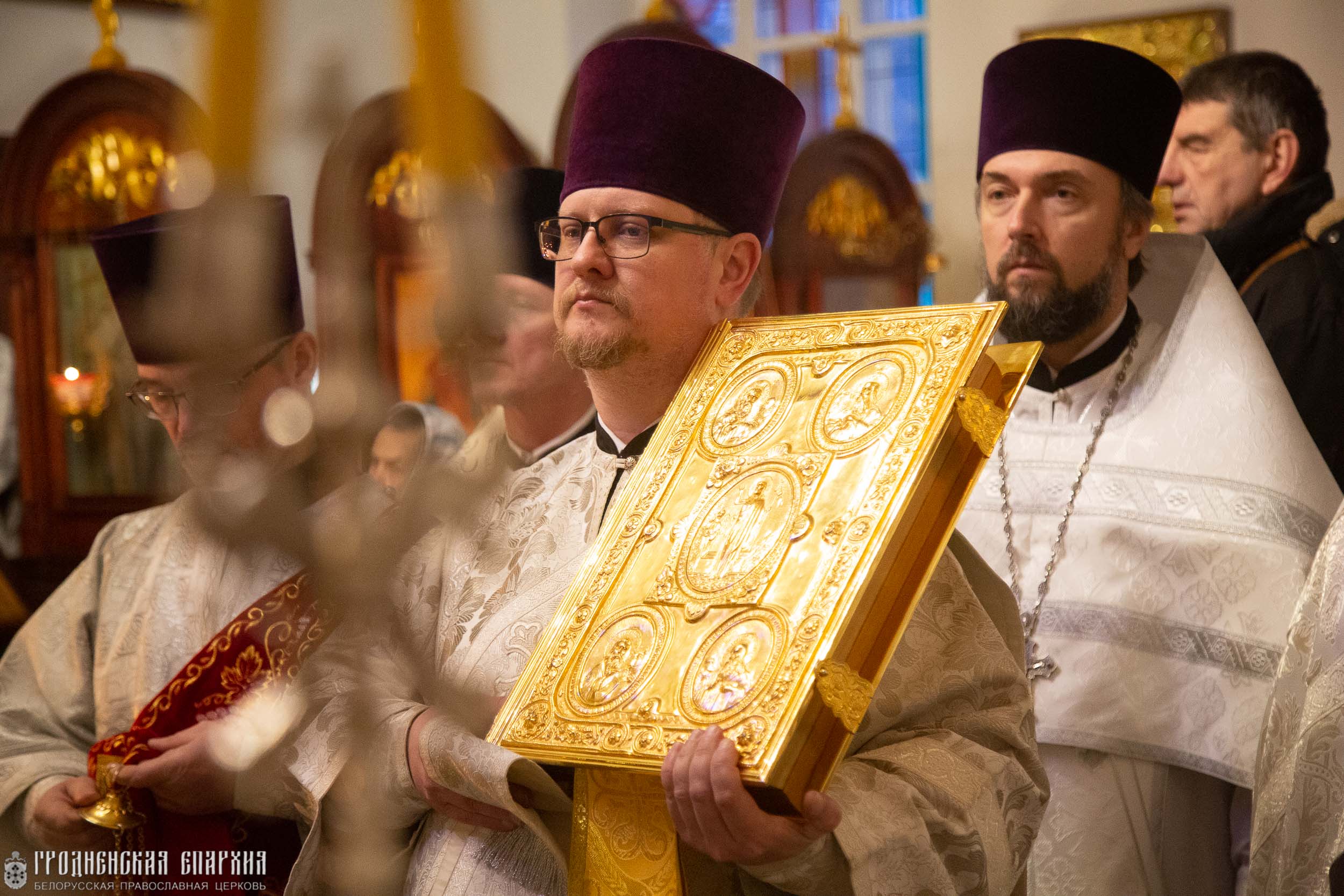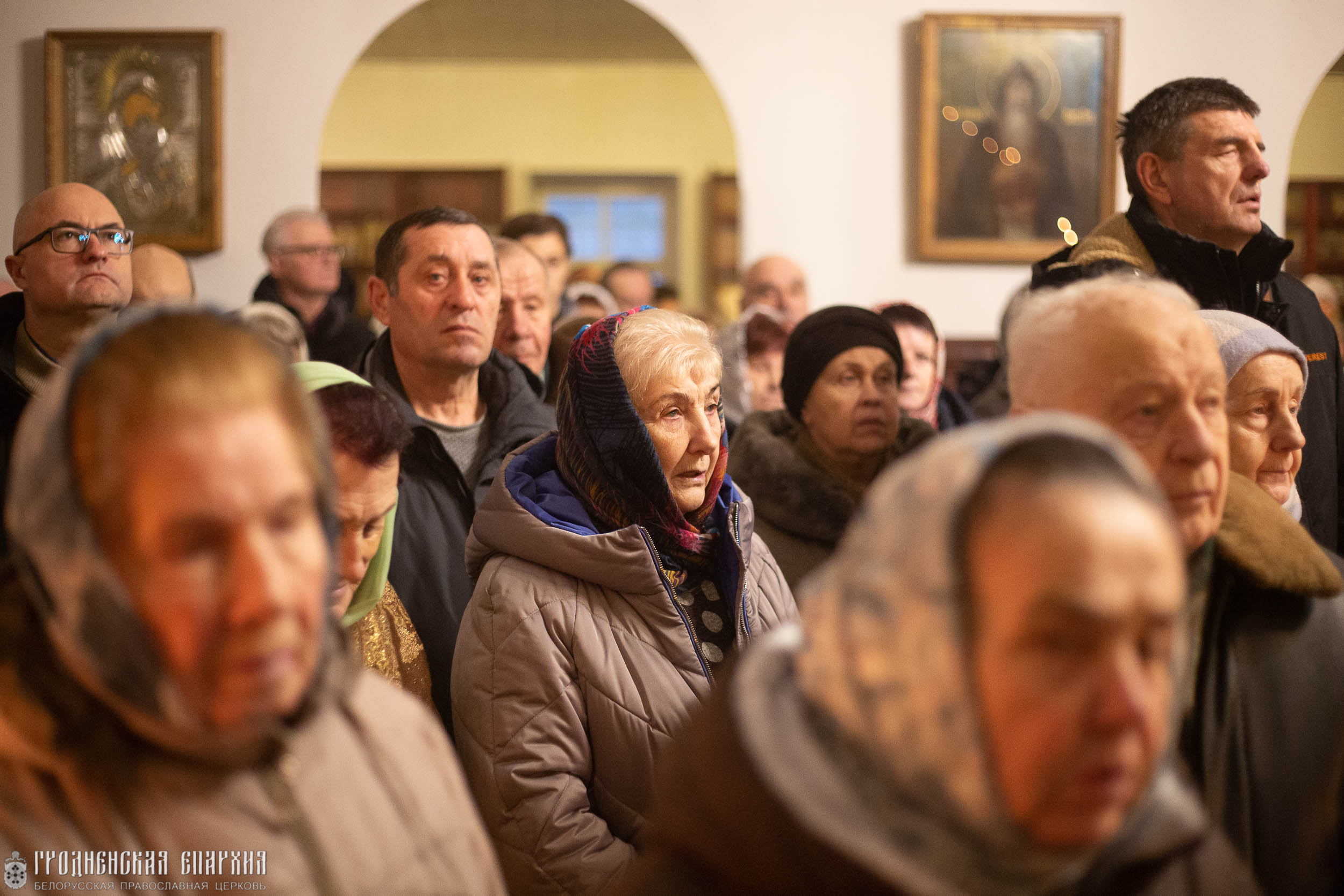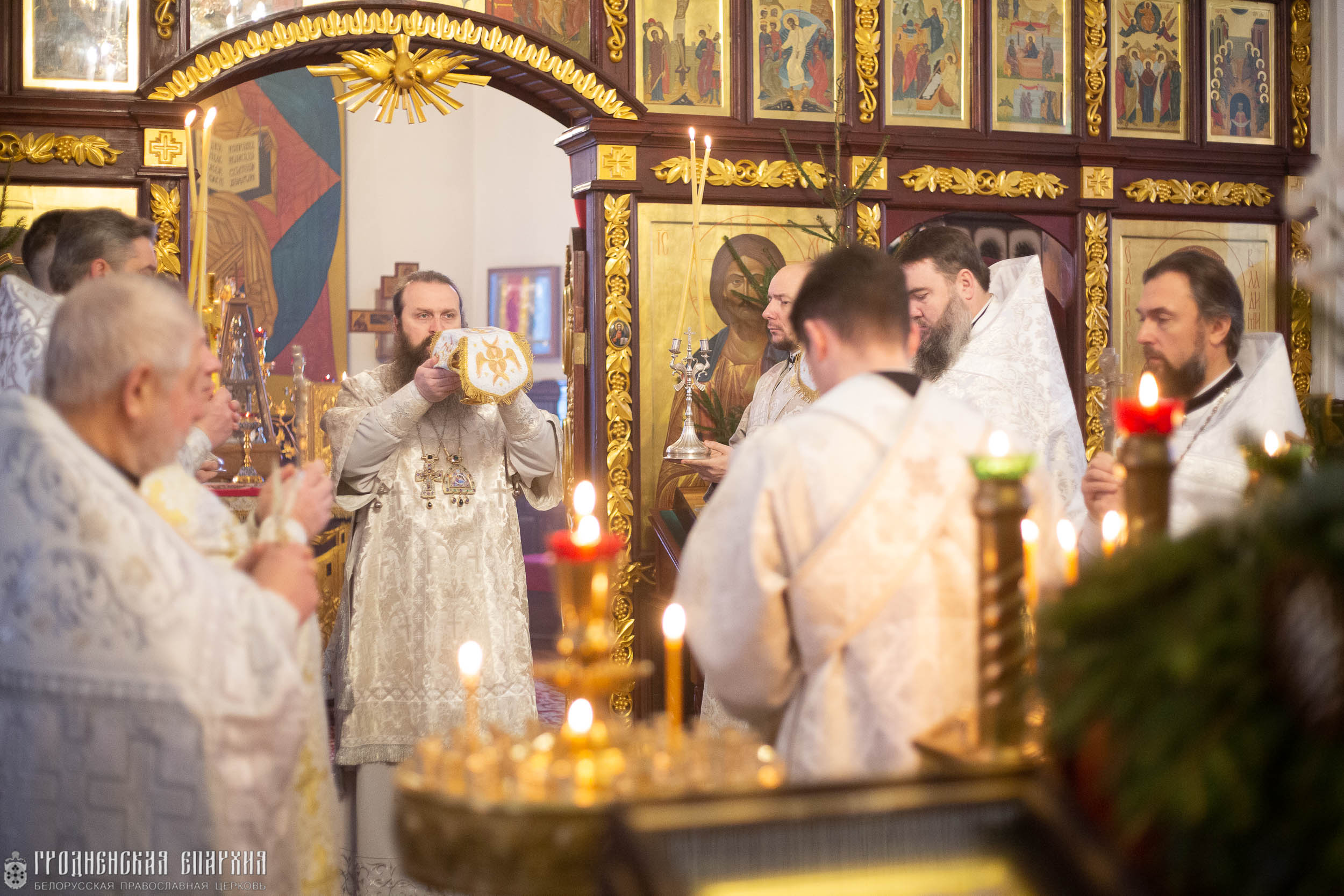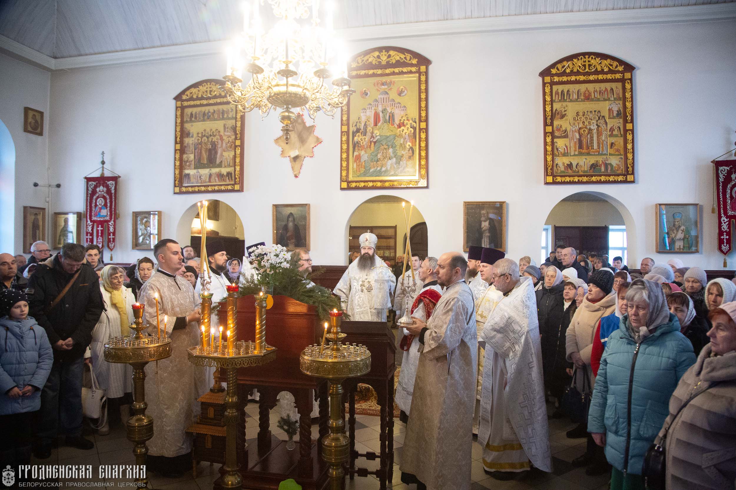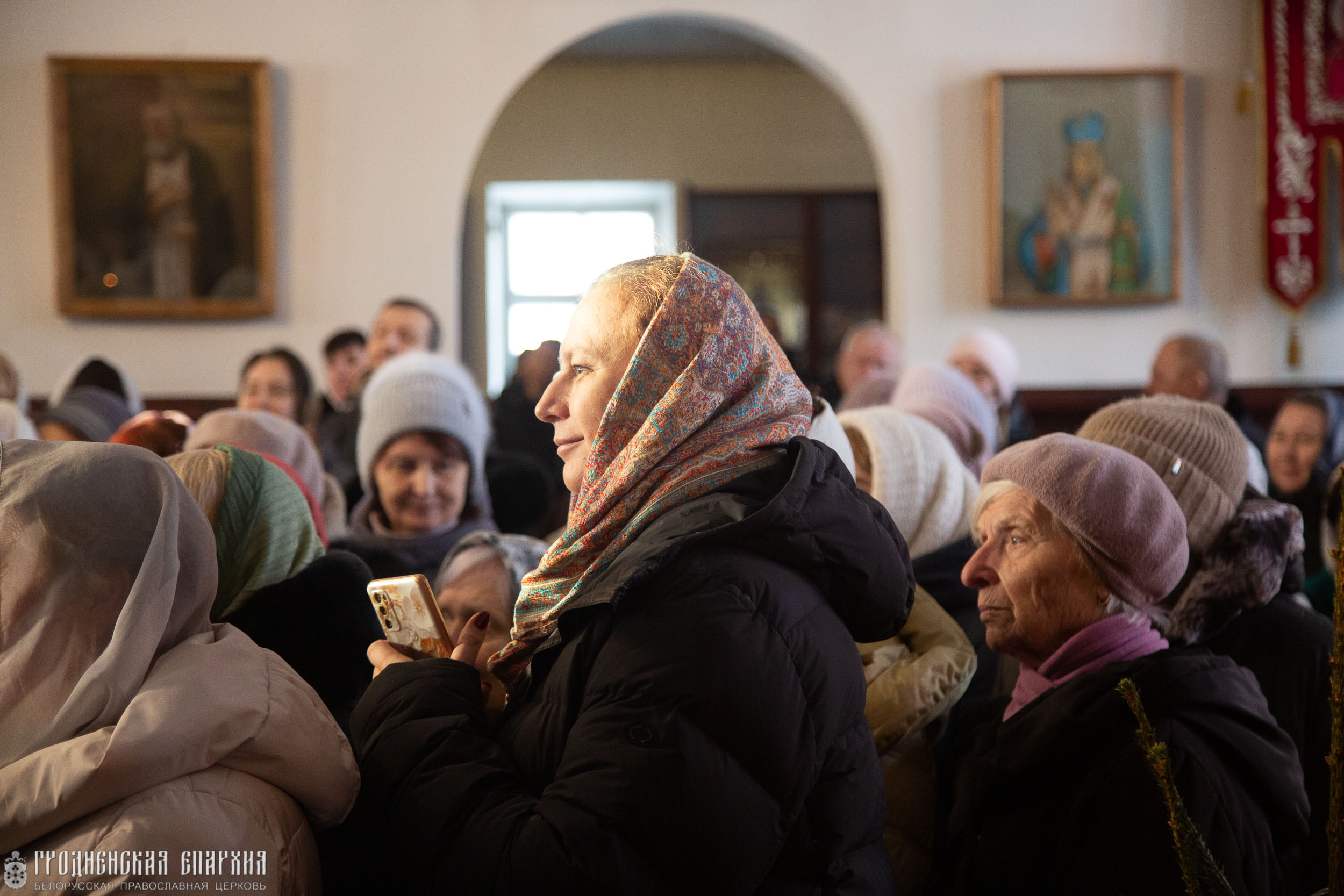 Его Высокопреосвященству сослужили: протоиерей Николай Лабынько, Секретарь Гродненской епархии, настоятель прихода храма святого благоверного князя Александра Невского г. Гродно; протоиерей Григорий Беляцкий, настоятель кафедрального собора Покрова Пресвятой Богородицы г. Гродно; протоиерей Вячеслав Гапличник, благочинный Гродненского городского церковного округа, настоятель прихода храма преподобномученика Афанасия Брестского г. Гродно; протоиерей Александр Велисейчик настоятель прихода храма святого равноапостольного князя Владимира г. Гродно; протоиерей Иоанн Велисейчик, настоятель прихода храма святого преподобномученика Серафима Жтровичского г. Гродно; протоиерей Аркадий Касьяненко, клирик прихода храма святого равноапостольного князя Владимира г. Гродно.