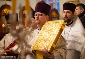 На малом входе, по благословению Митрополита Минского и Заславского Вениамина, Патриаршего Экзарха всея Беларуси, во внимание к усердным трудам во славу Церкви Божией клирик прихода храма святого равноапостольного князя Владимира г. Гродно протоиерей Аркадий Косьяненко удостоен права ношения наперсного креста с украшениями.