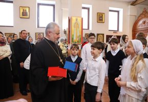 Со словами поздравления и духовного наставления к воспитанникам обратилась одна из старейших прихожанок Коложского прихода, ветеран педагогического труда Людмила Николаевна Васильева, в течение многих лет исполнявшая послушание завуча приходской воскресной школы.