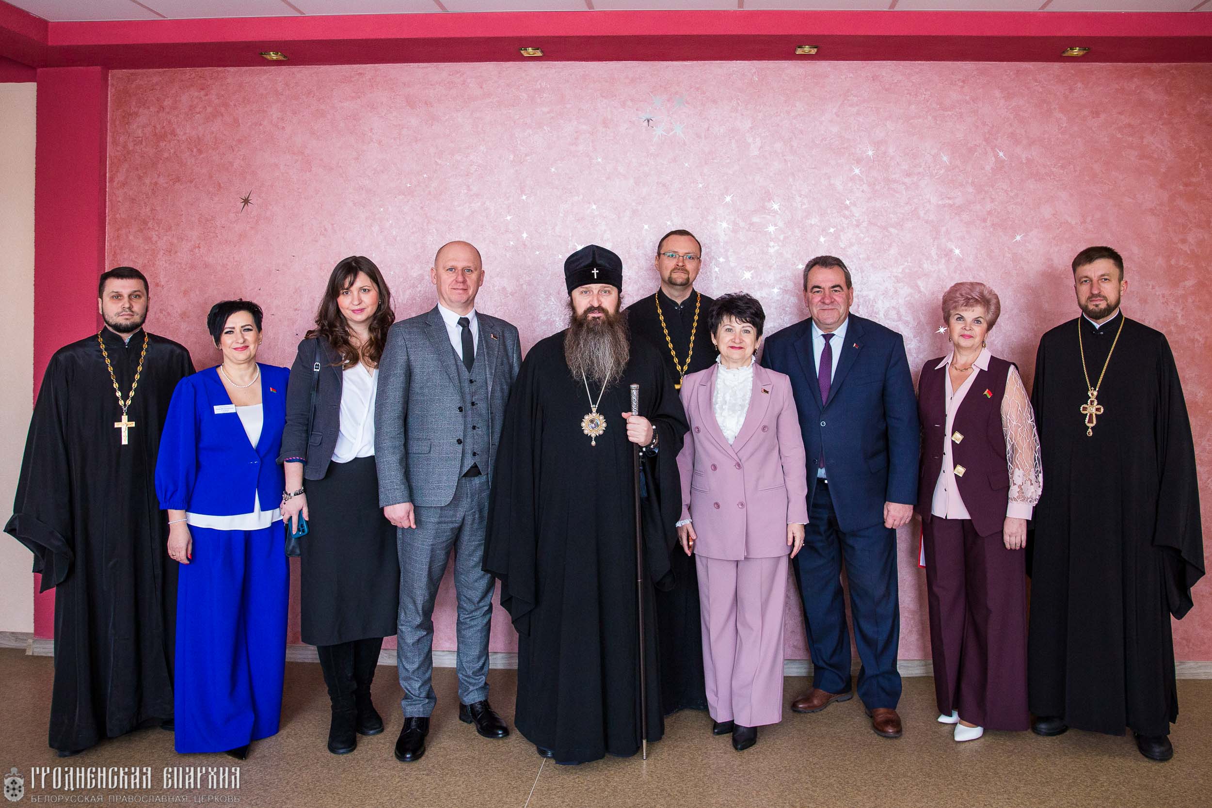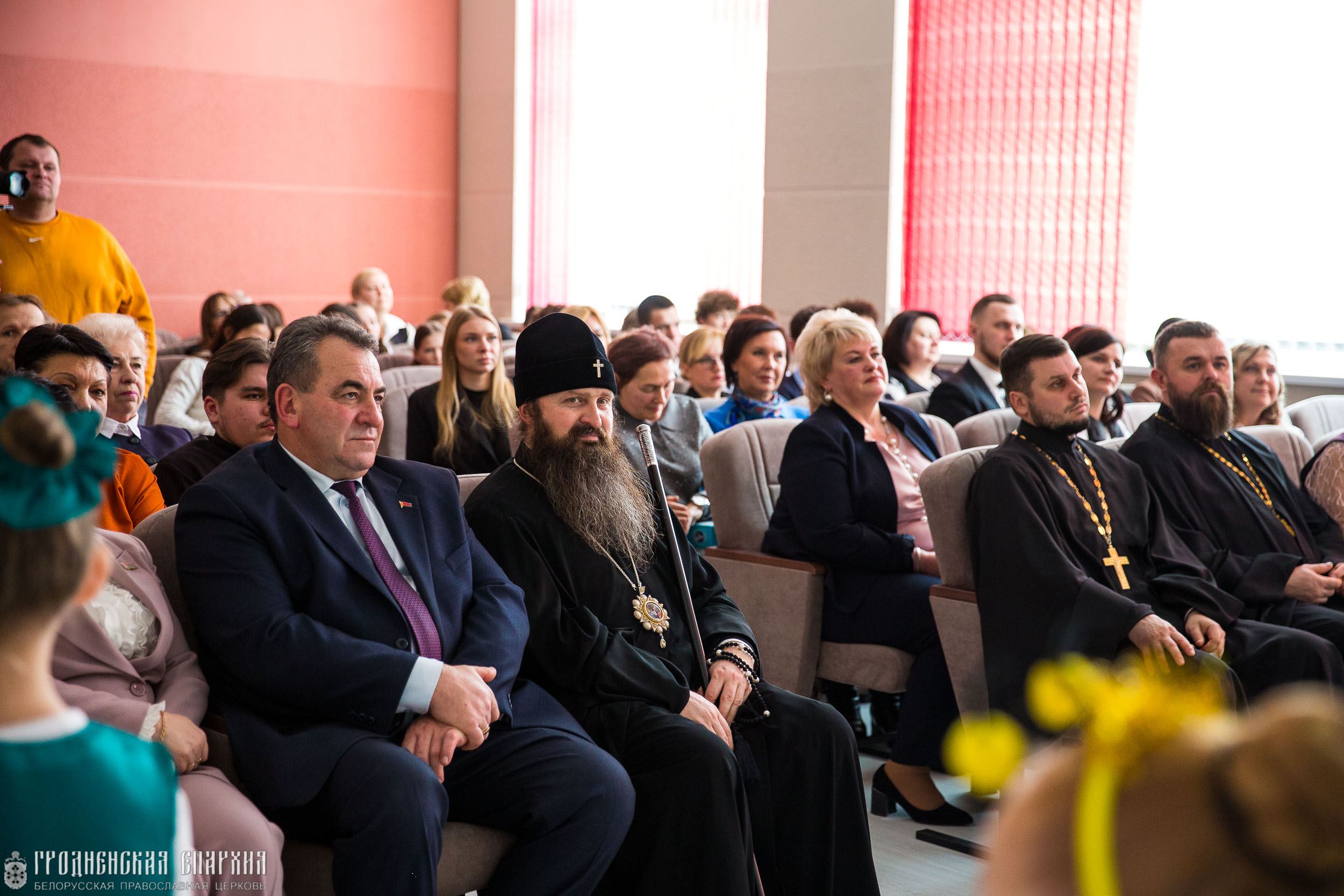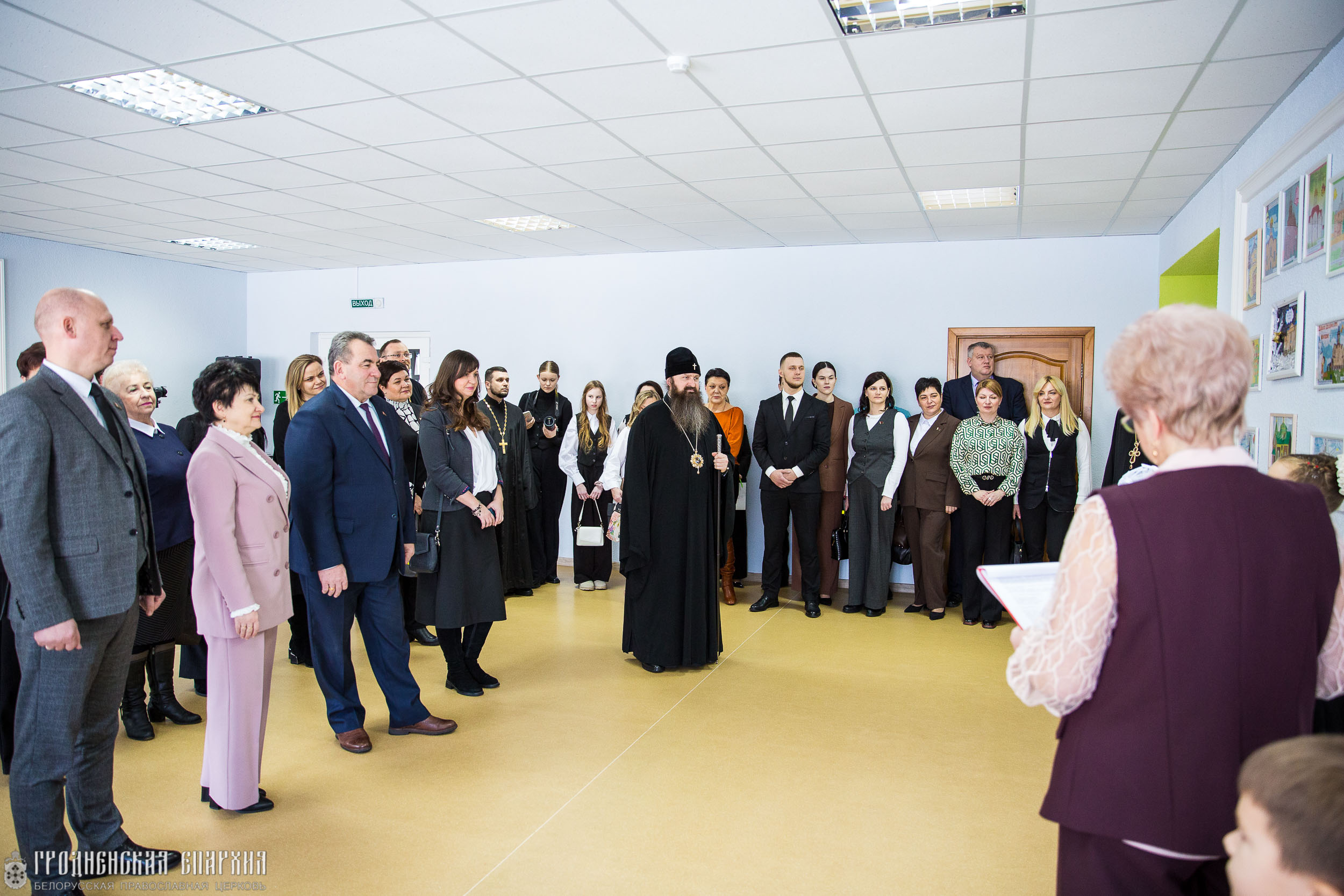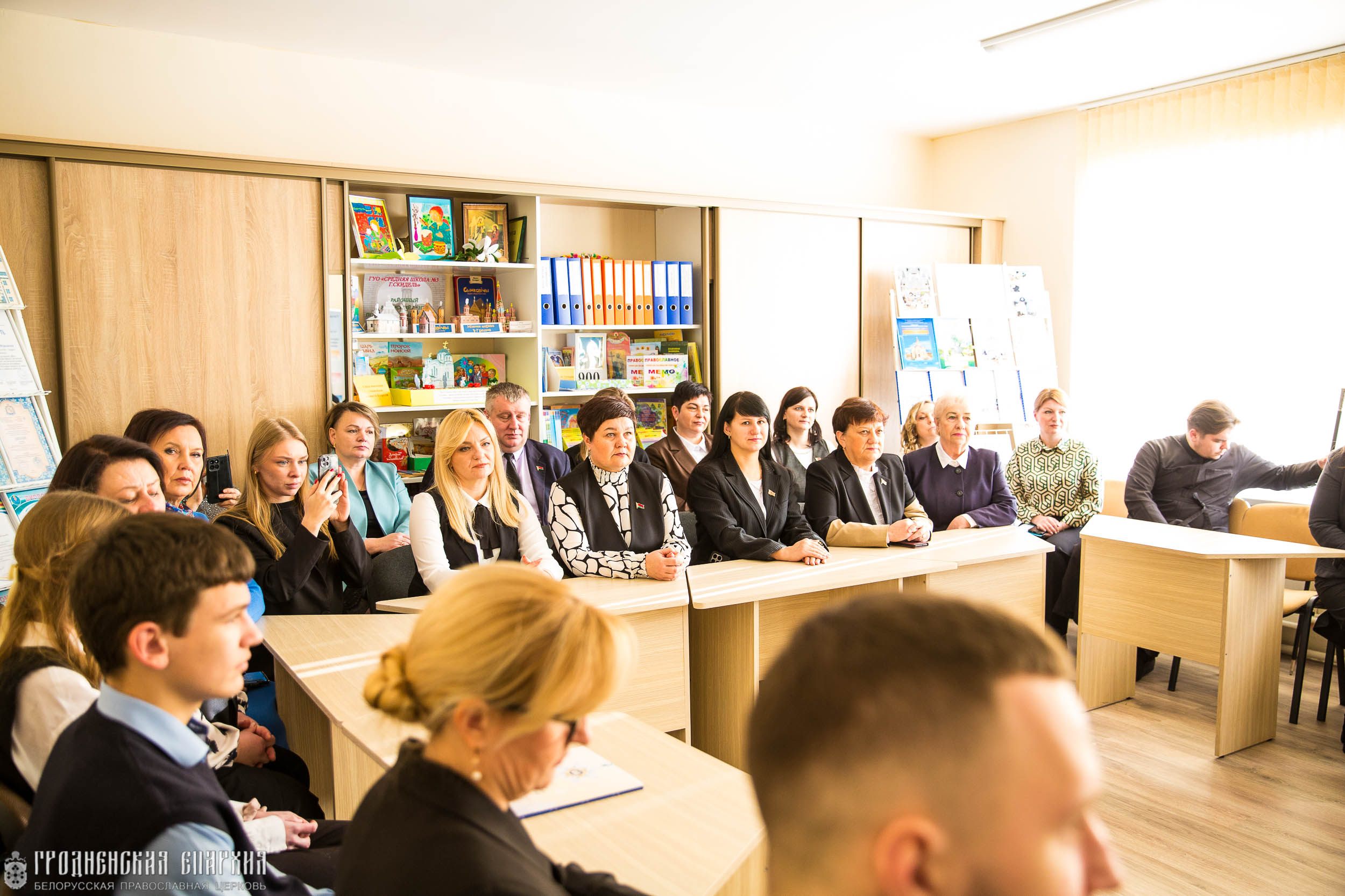 В учреждении образования архипастыря встречали: Валерий Владимирович Хелский, председатель Гродненского районного исполнительного комитета; Андрей Станиславович Мацкевич, заместитель председателя Гродненского районного исполнительного комитета; Татьяна Михайловна Аксамит, начальник управления образования Гродненского районного исполнительного комитета; Лилия Сергеевна Шиманица, методист центра воспитательной, идеологической и социально-педагогической работы Гродненского областного института развития образования; Майя Валентиновна Слуцкая, директор ГУО «Средняя школа №3 г. Скиделя имени Е. М. Шевченко»; Алла Владимировна Иодковская, руководитель Областного центра эффективных педагогических практик по духовно-нравственному, патриотическому и семейному воспитанию обучающихся; педагоги и учащиеся школы.