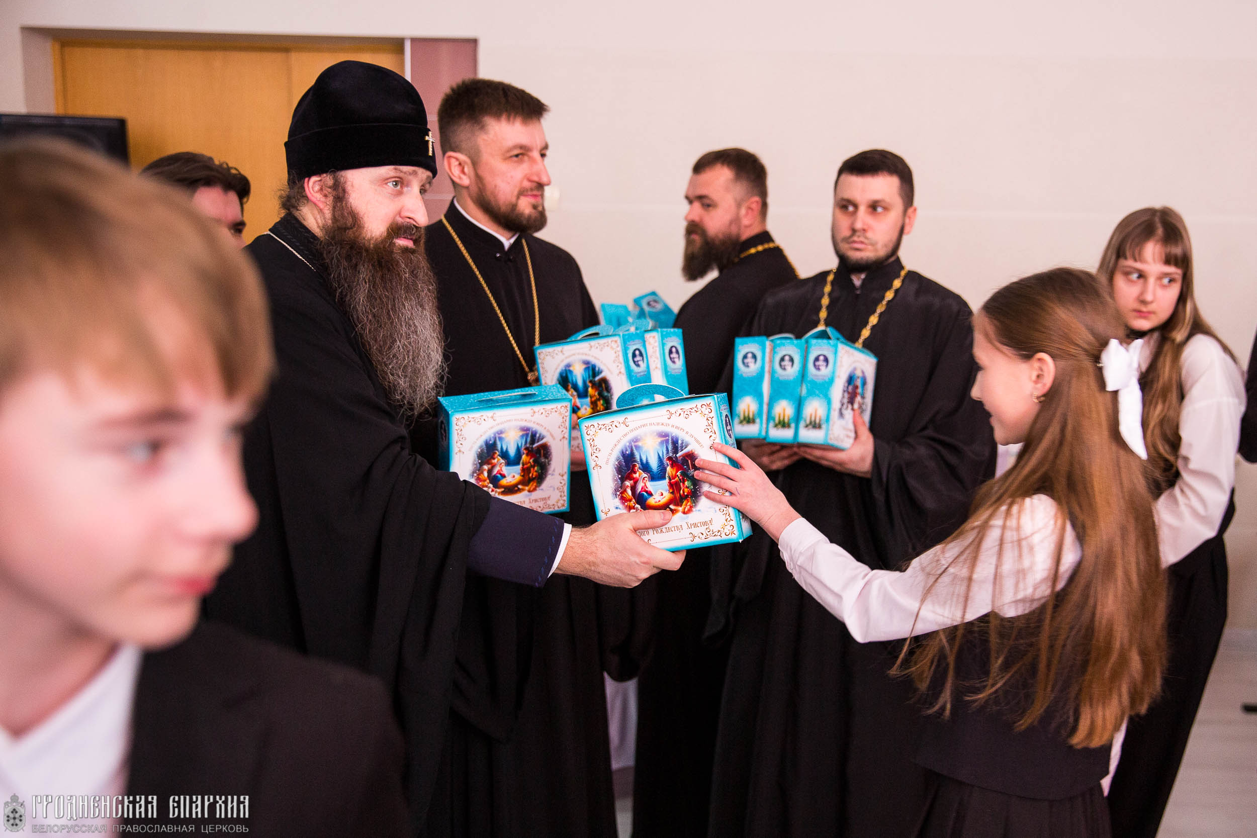 В завершении встречи все ее участники в рамках благотворительных акций — епархиальной «Рождество приходит к каждому!» и республиканской «Наши дети» — получили сладкие подарки от Гродненской епархии.
