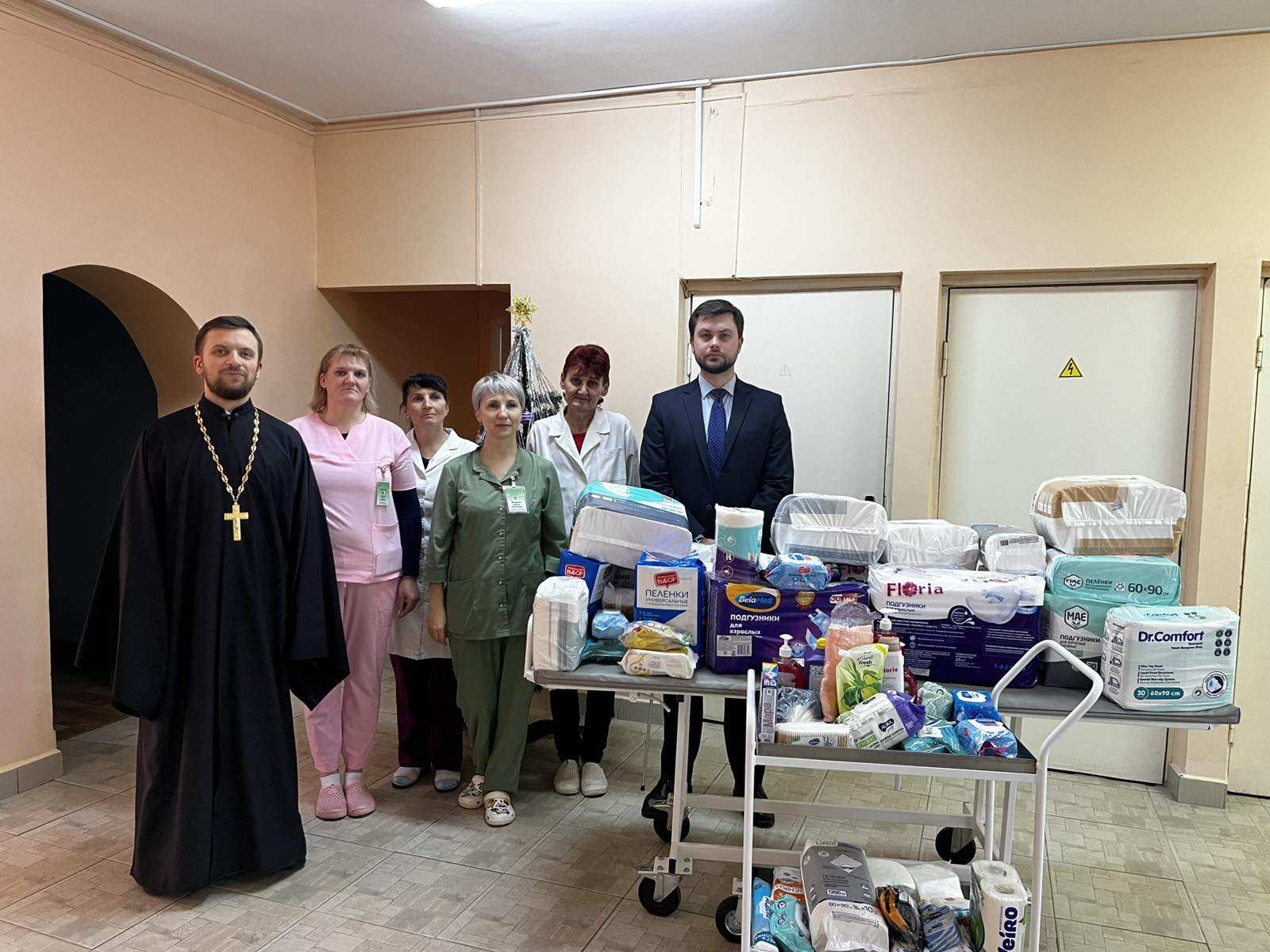 14 января, в рамках епархиальной благотворительной акции «Рождество приходит к каждому», настоятель прихода храма Святого Духа аг. Озеры иерей Александр Цыбульский посетил больницу сестринского ухода.