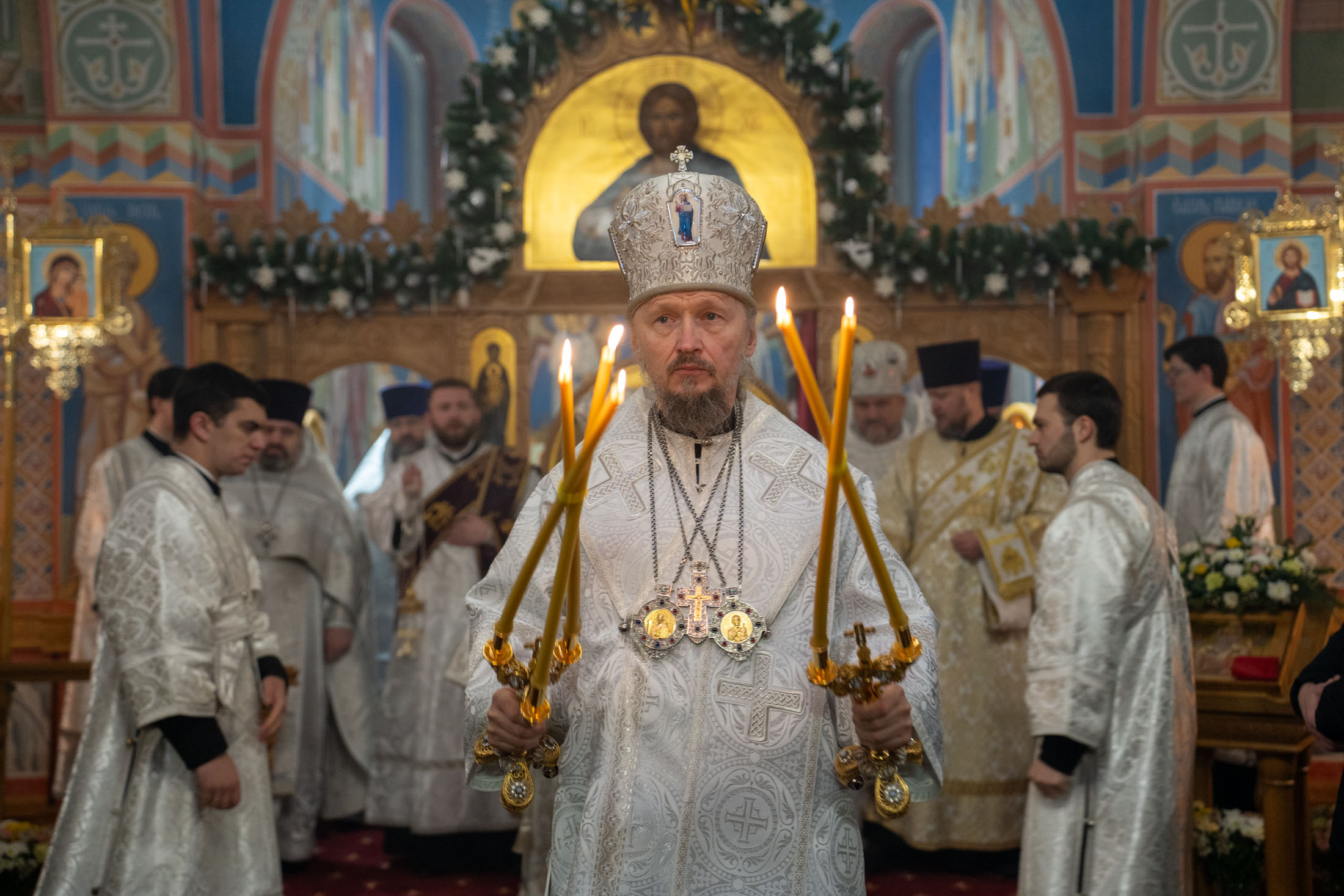 По завершении богослужения Митрополит Вениамин поздравил духовенство и прихожан с предпразднством Крещения Господня, а также настоятеля храма протоиерея Анатолия Иващука с 50-летием.