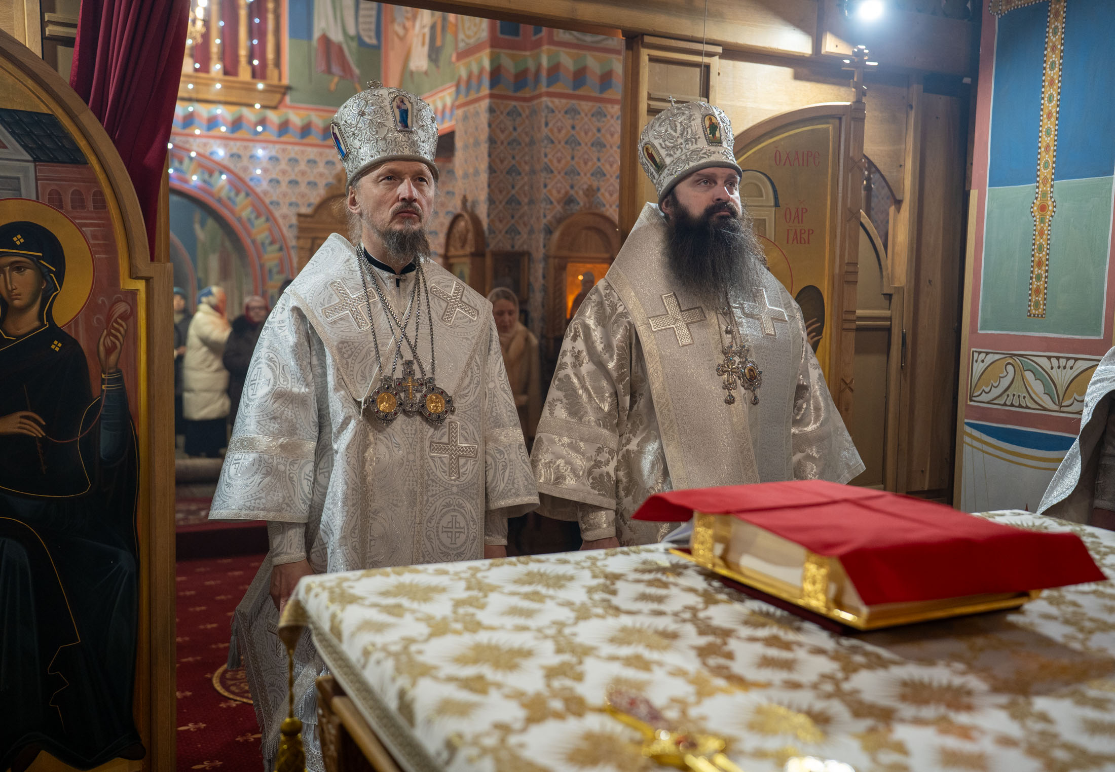 Архипастырям сослужили: настоятель храма святителя Николая Чудотворца поселка Привольный протоиерей Анатолий Иващук; секретарь Минской епархии протоиерей Андрей Волков; настоятель храма Покрова Божией Матери агрогородка Вейно, благочинный Могилевского районного округа протоиерей Николай Остапчук; настоятель храма Святых Царственных мучеников, всех новомучеников и исповедников ХХ века города Могилева протоиерей Андрей Купцов; клирик храма святого апостола Андрея Первозванного города Минска протоиерей Димитрий Ахраменко; клирик храма святой равноапостольной Ольги города Минска протоиерей Владимир Долгополов, клирик прихода иерей Димитрий Вабищевич.