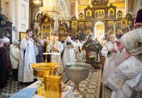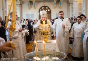 По окончании Божественной литургии архиепископ Антоний совершил великую вечерню и чин великого освящения воды.