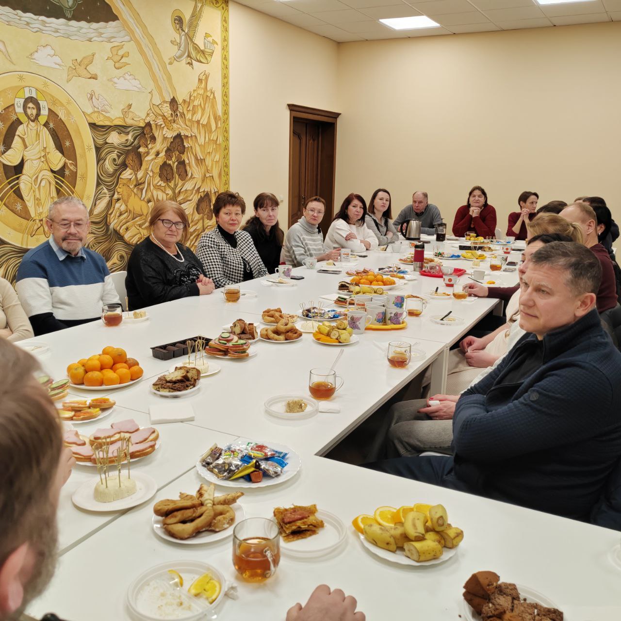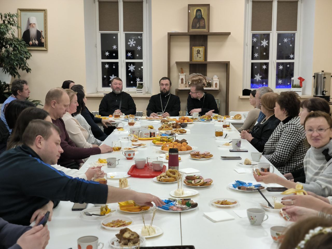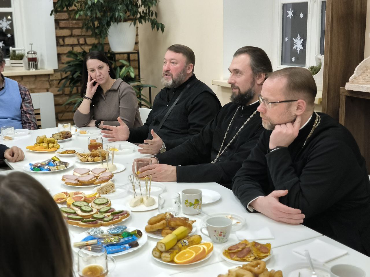 В ходе встречи за праздничным столом участники общались, обменивались поздравлениями с праздником Рождества Христова, а также обсуждали вопросы духовной жизни и учебного процесса.