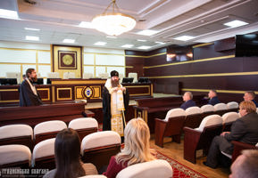 Затем архипастырь и священнослужители совершили молебен о здравии сотрудников Комитета государственного контроля и даровании им помощи Божьей в исполнении профессиональных обязанностей и служебного долга.