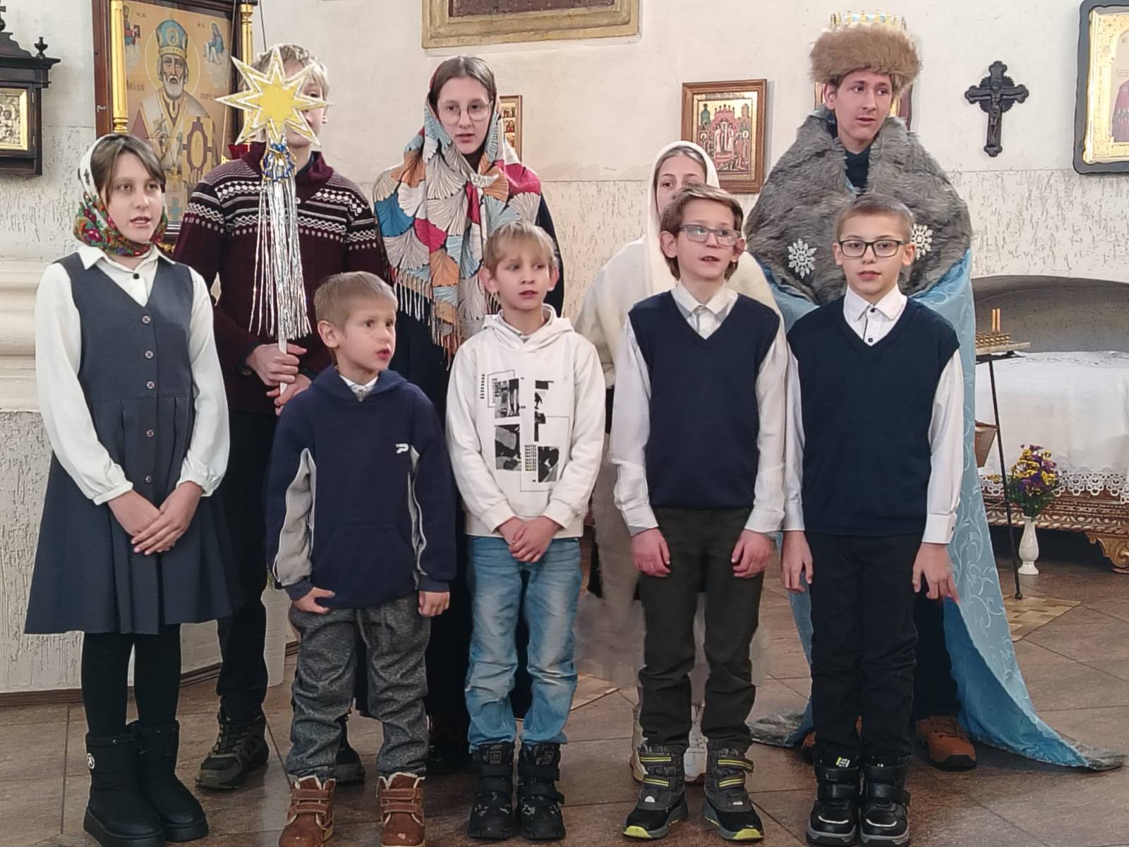 В праздничном мероприятии приняли участие настоятель прихода иерей Олег Засим, матушка Елена, активные прихожане и дети. Участники подготовили концертную программу: прозвучали рождественские песнопения и стихи, были представлены театрализованная сценка и тематические загадки.