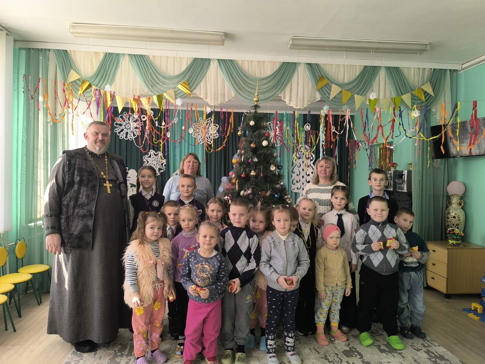Визит состоялся в рамках акции «Ёлка желаний». В ходе встречи настоятель поздравил с праздником Рождества Христова и Крещения Господня и вручил детям сладкие подарки, а воспитанники воскресной школы выступили с рождественской сценкой.