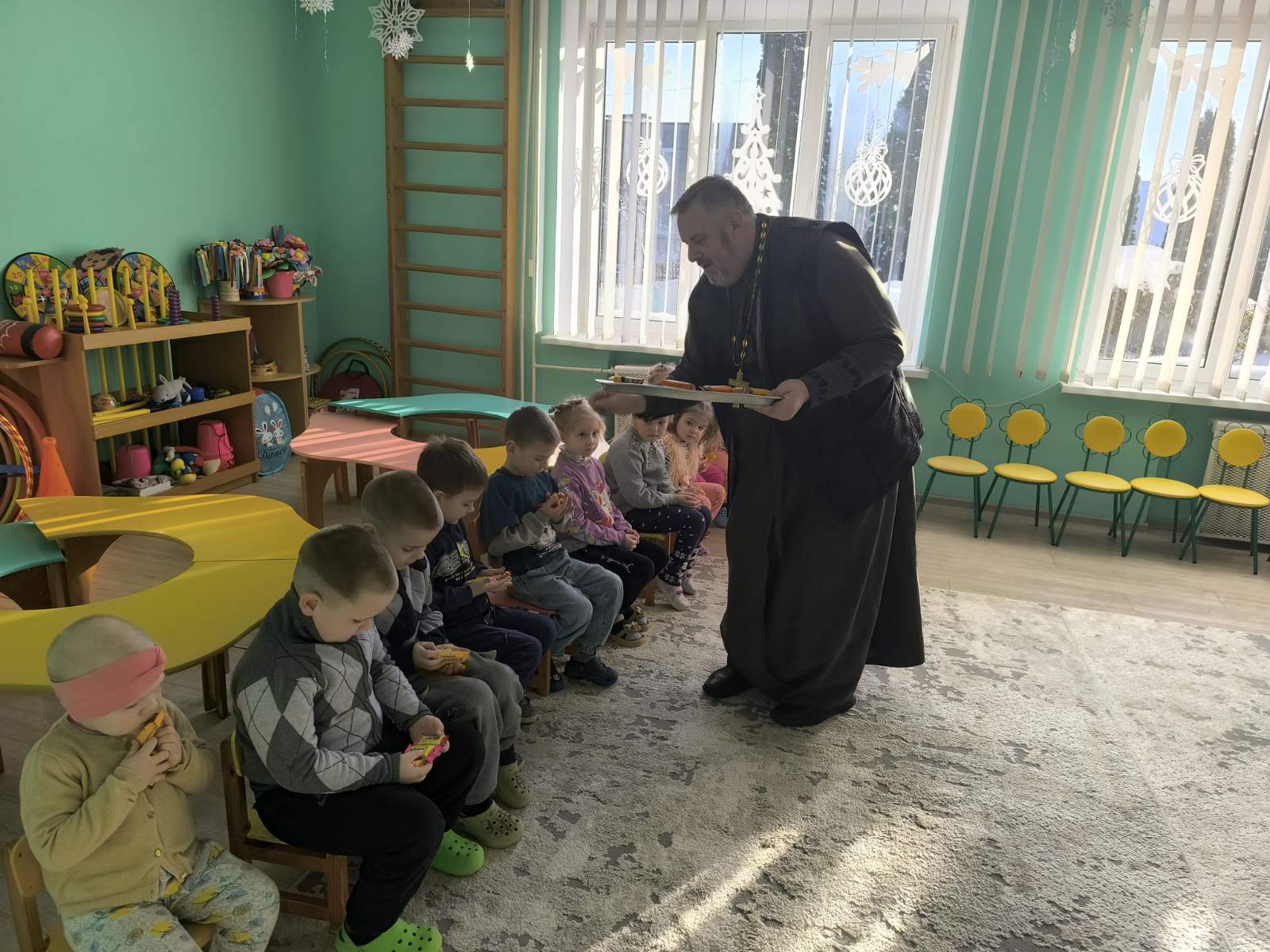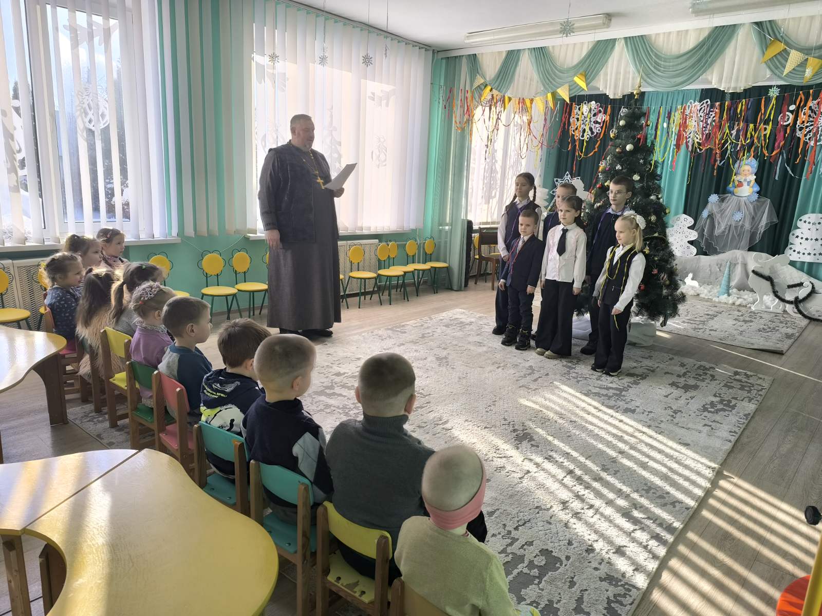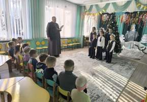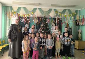 19 января, в праздник Крещения Господня, настоятель храма святого великомученика Георгия Победоносца в аг. Голынка, иерей Сергий Шумец, вместе с учащимися воскресной школы посетили детский сад в аг. Елка.