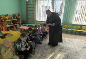 Иерей Сергий Шумец вместе с воспитанниками воскресной школы посетили детский сад в аг. Елка