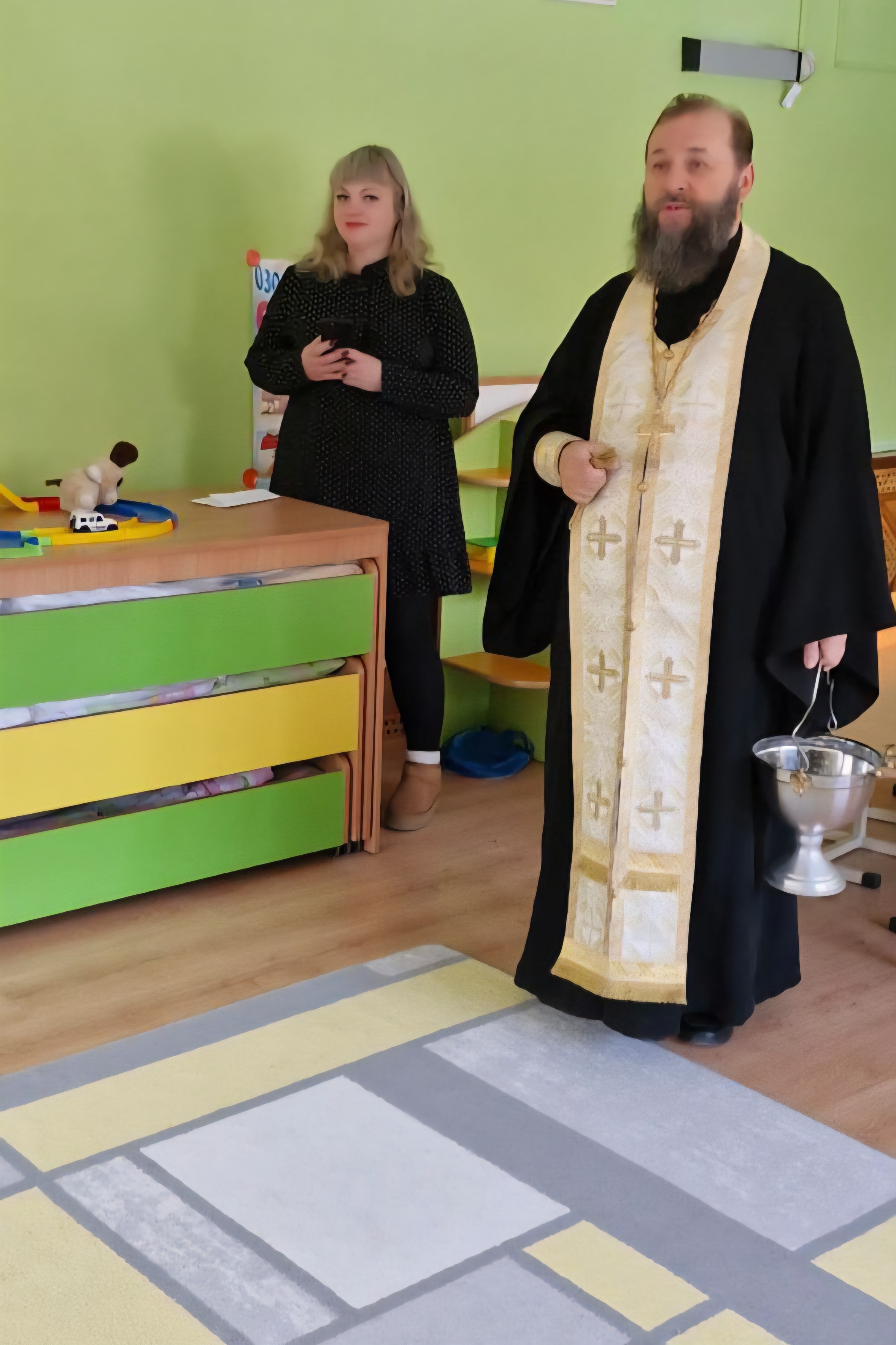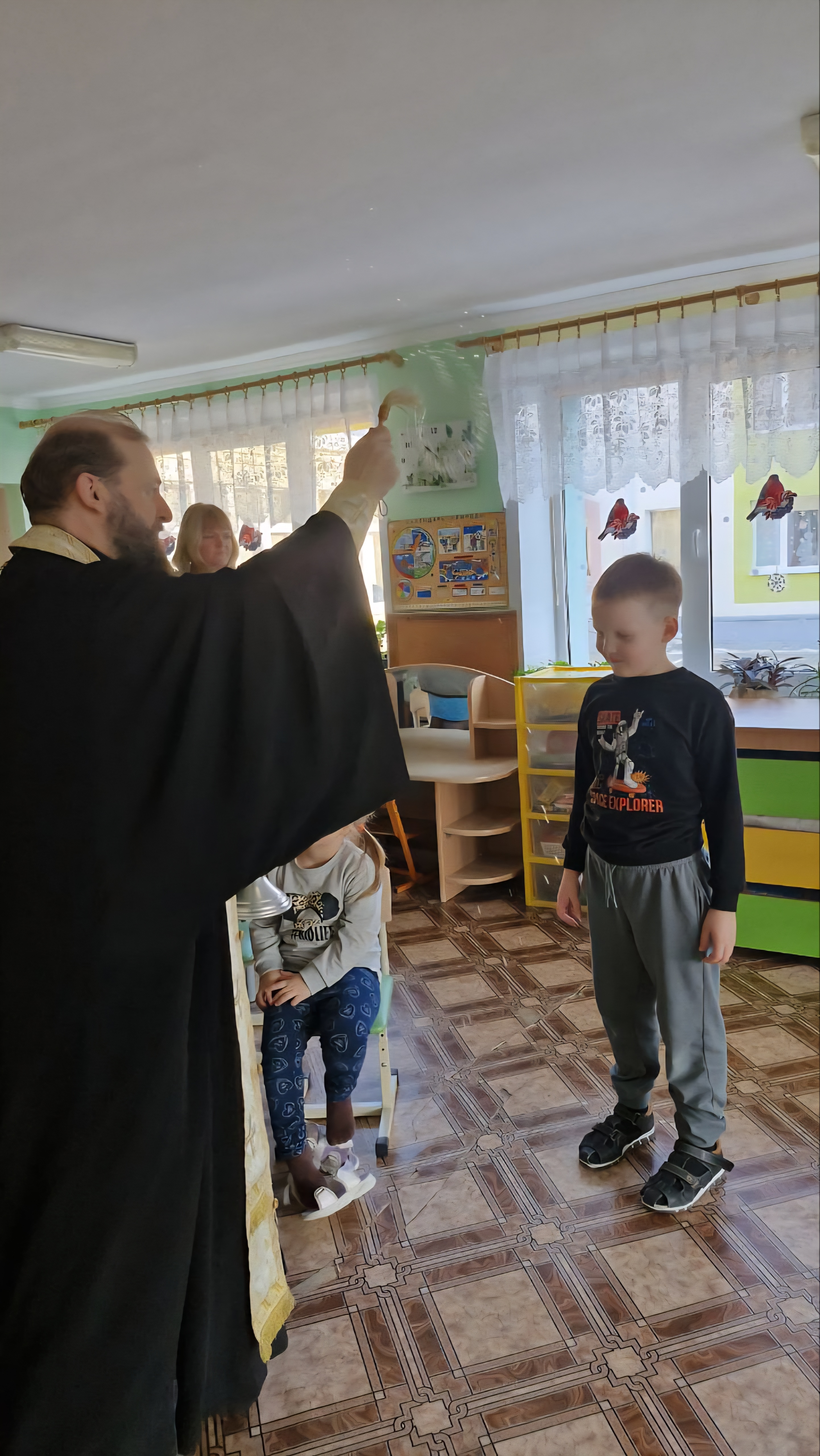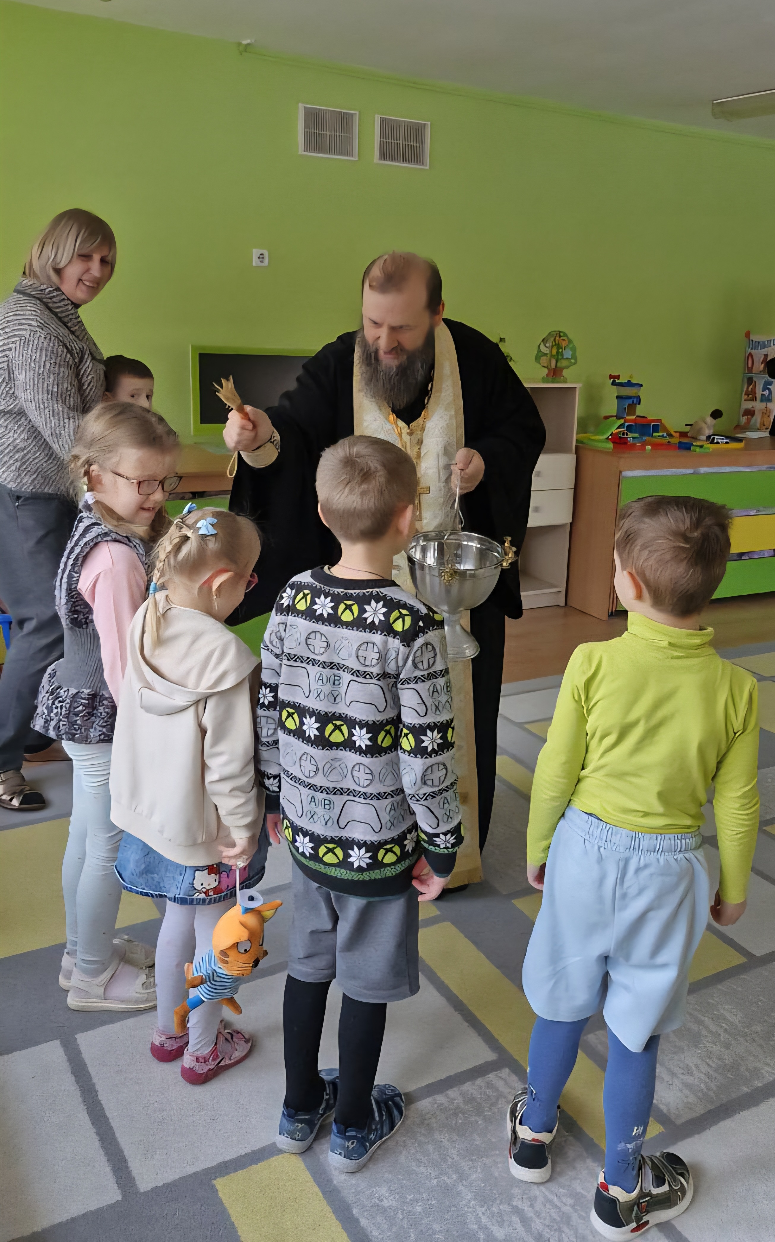По завершении молитвы священник, следуя древней благочестивой традиции, окропил святой водой помещения детского сада, призывая Божие благословение на всё, что происходит в его стенах.