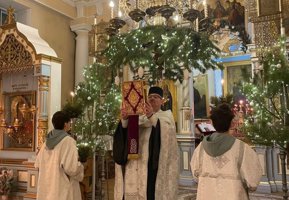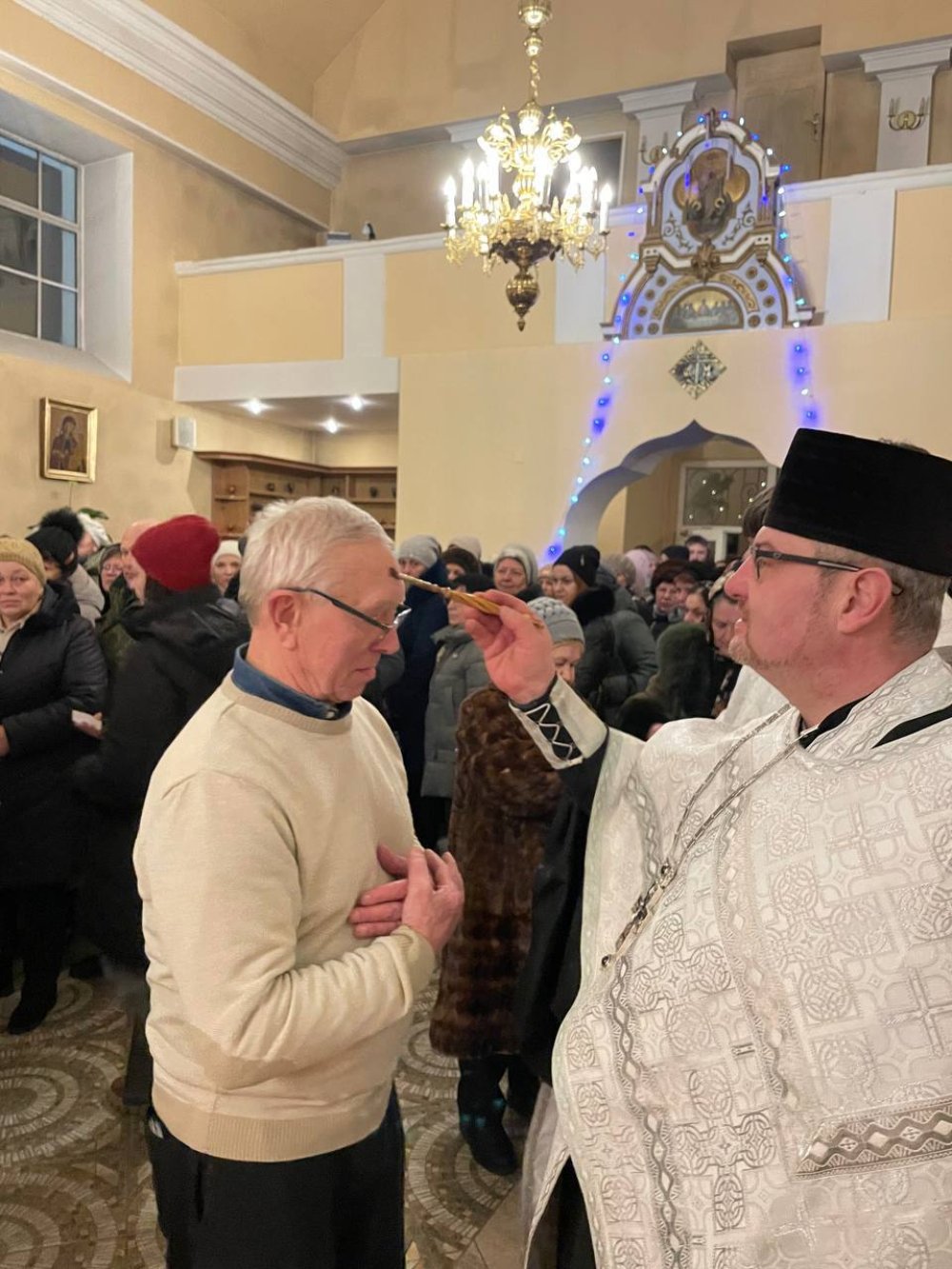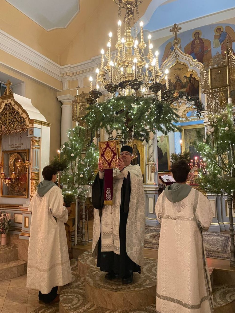 Вечером 18 января было совершено праздничное богослужение с чтением евангельских и апостольских отрывков, раскрывающих духовный смысл Богоявления. Перед чином Великого освящения воды настоятель храма протоиерей Георгий Суботковский обратился к прихожанам с пастырским словом, напомнив о первостепенной значимости участия в Божественной литургии, исповеди и Причастии Святых Христовых Таин.