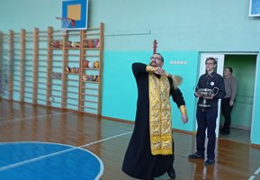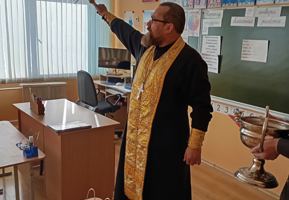Затем иерей Олег совершил молебен о здравии учащихся и преподавателей, пожелав им помощи Божией в учении и трудах. По окончании молебна священник окропил всех присутствующих и помещения школы крещенской водой.