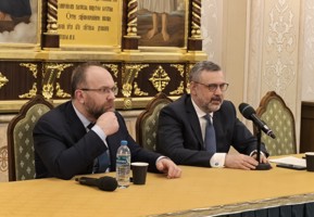 В ходе заседания состоялась встреча с председателем Синодального отдела по взаимоотношениям Церкви с обществом и СМИ Московского Патриархата Владимиром Легойдой.