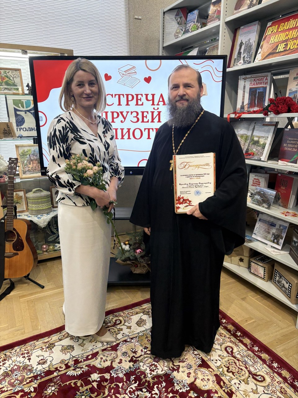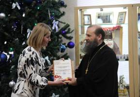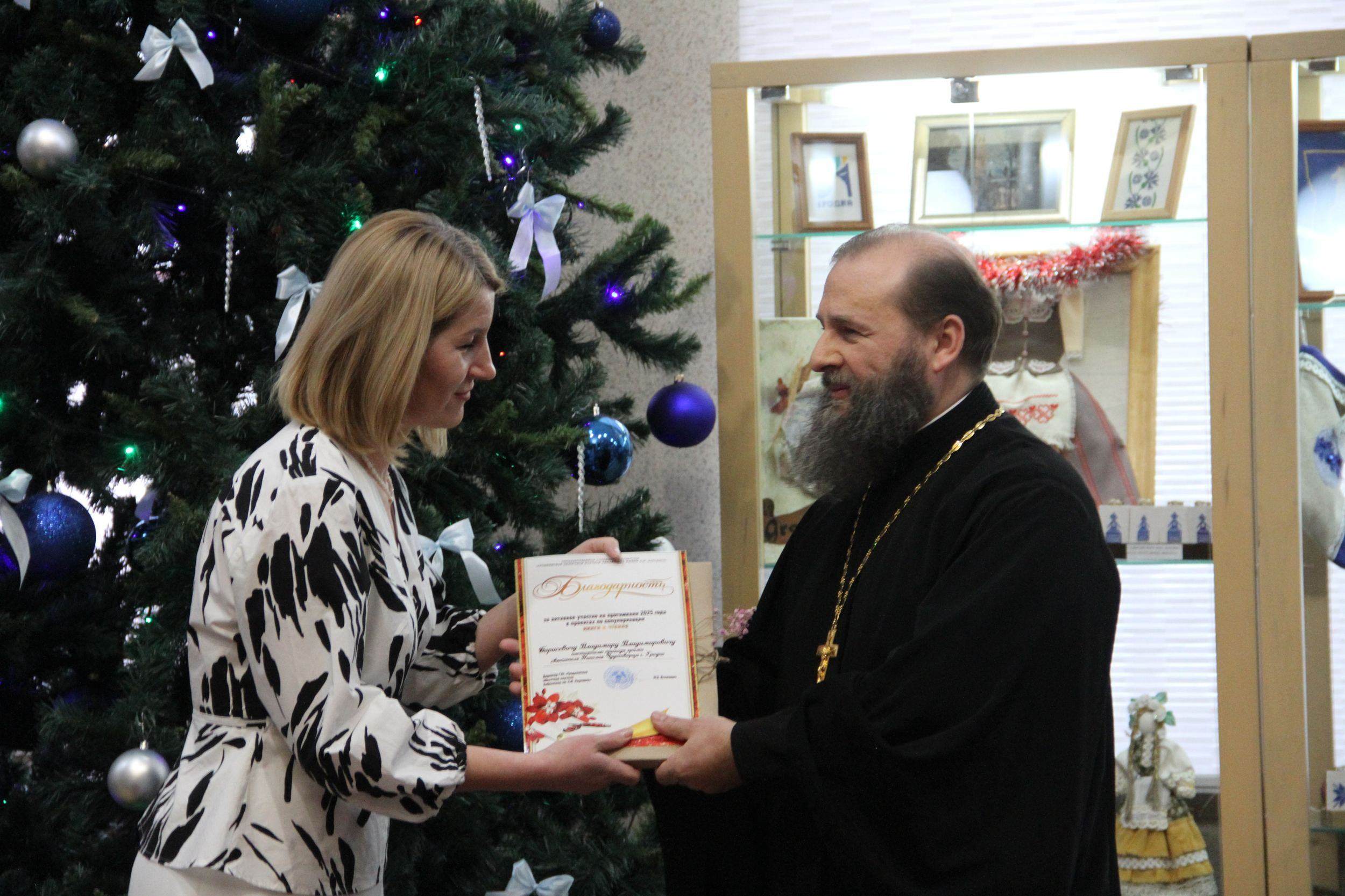 В ходе встречи протоиерею Владимиру Борисевичу была вручена Благодарность от коллектива библиотеки за активное участие в проектах по популяризации книги и чтения в 2025 году.