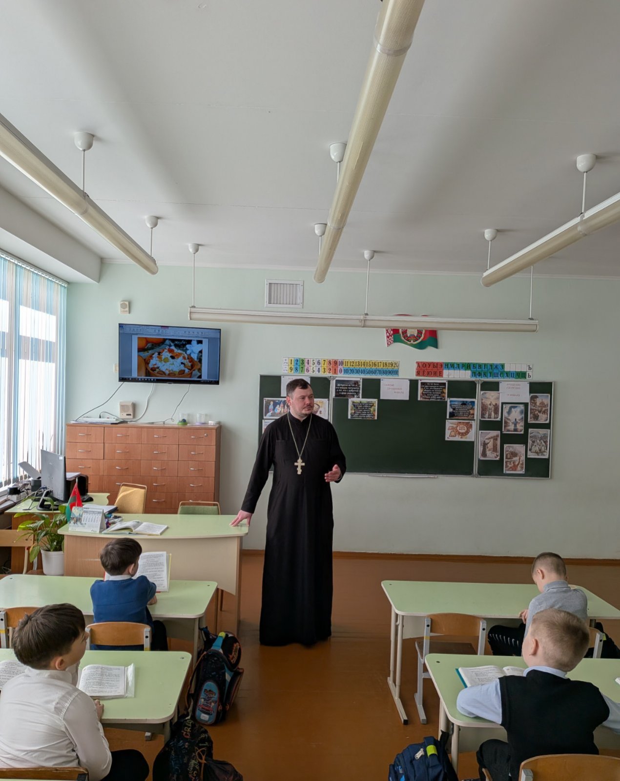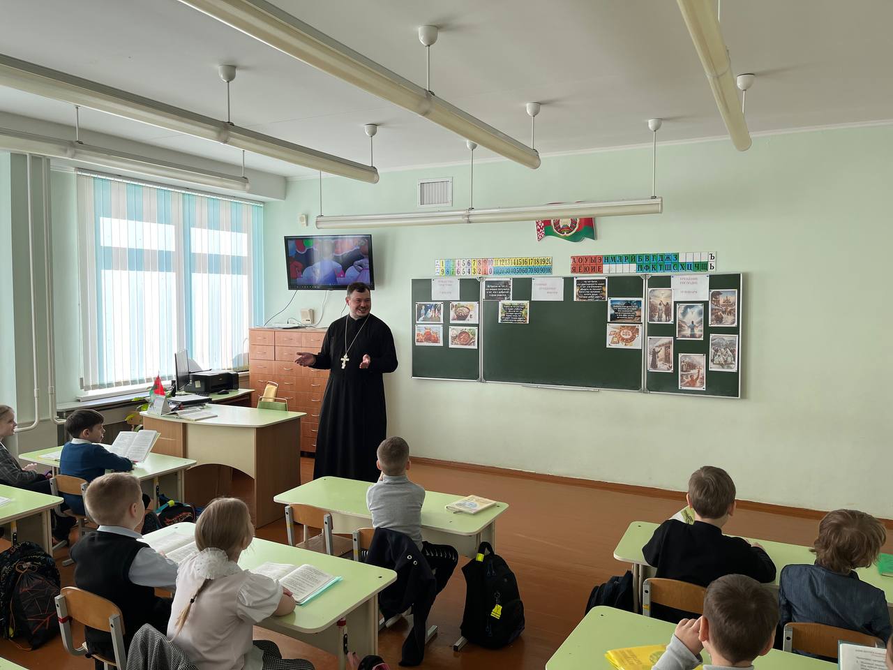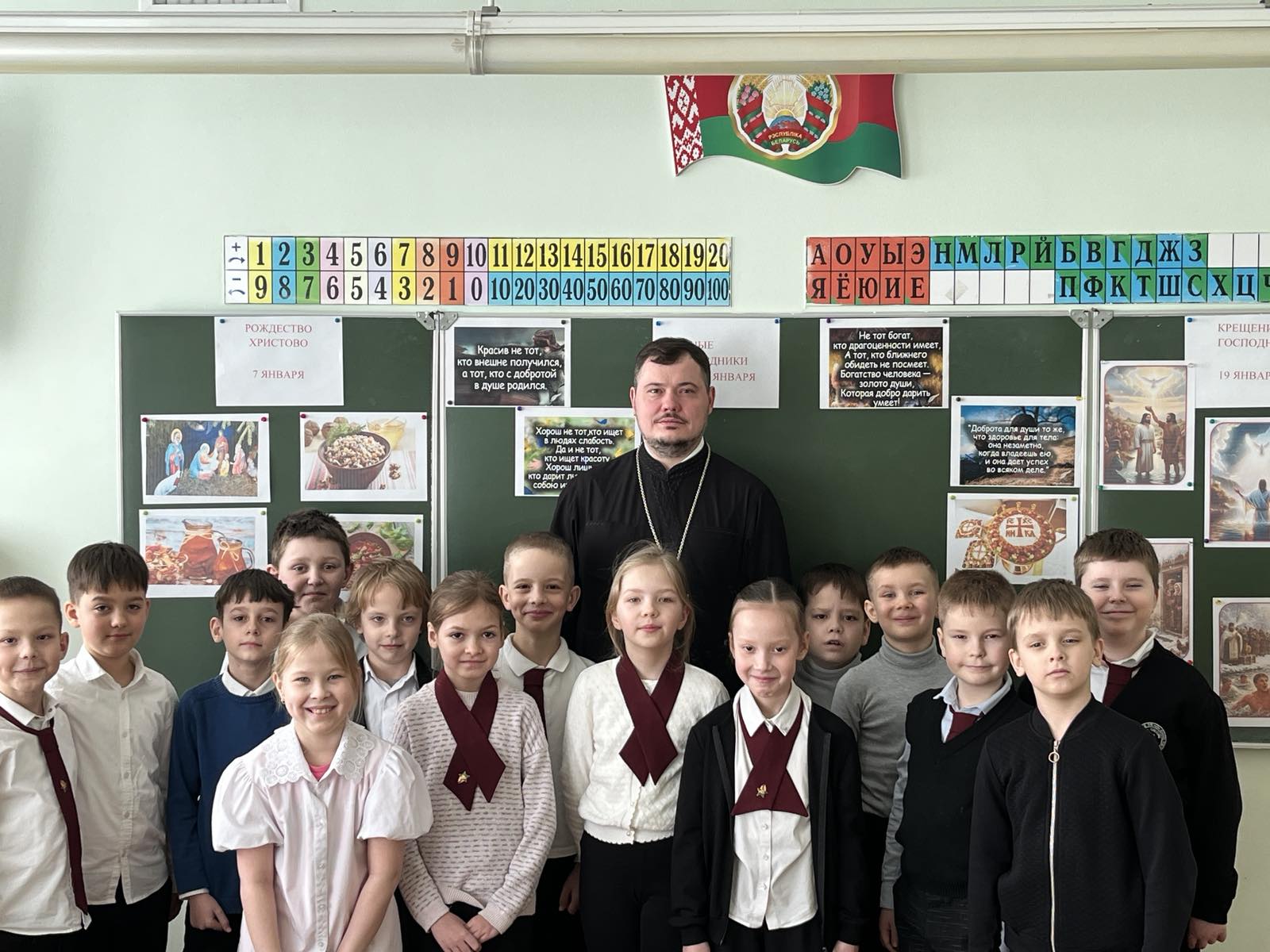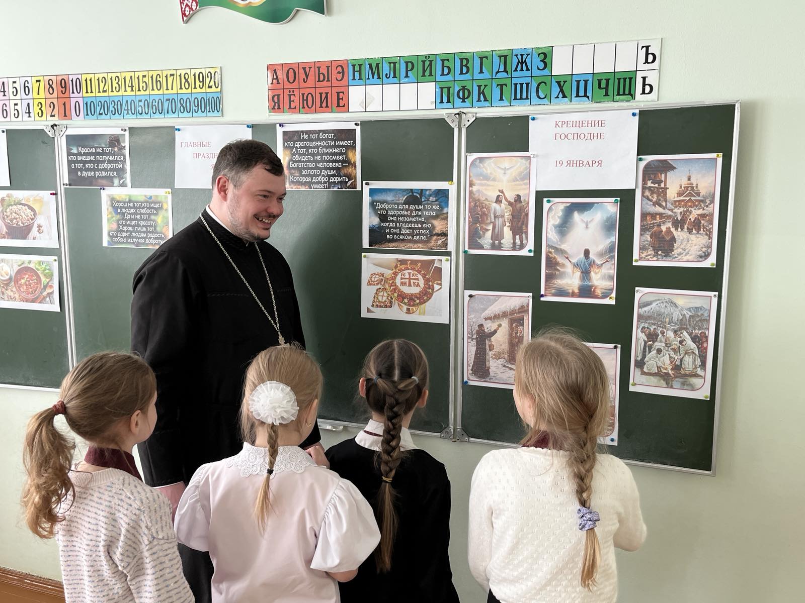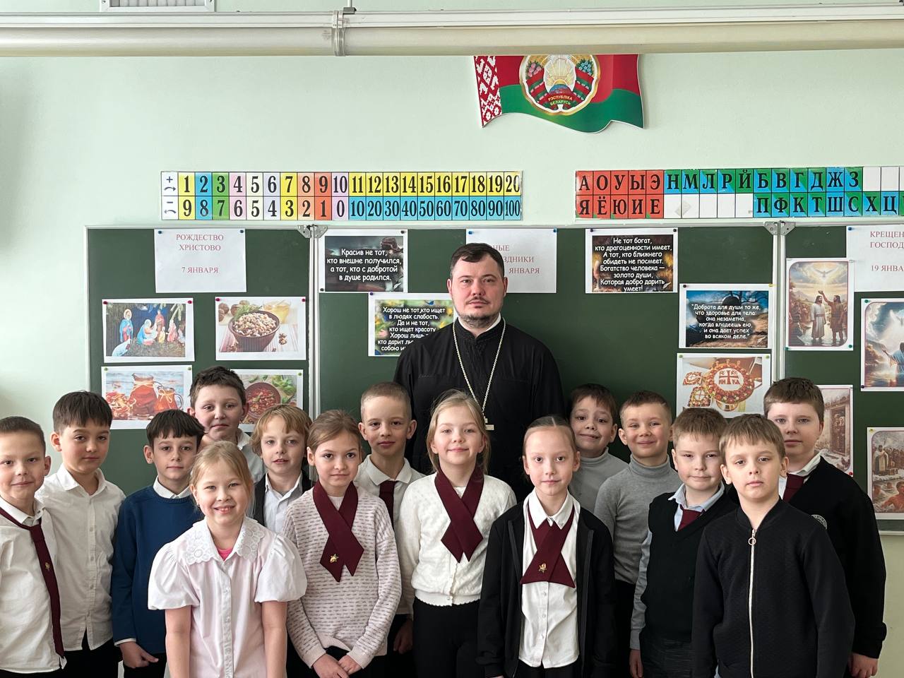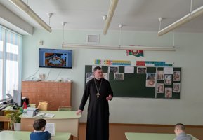 30 января клирик прихода храма Собора Белорусских святых — Архиерейского подворья иерей Александр Дьяченко провел уроки для учащихся 2 «А» и 2 «В» классов средней школы №38 имени Кирилла Туровского г. Гродно.
