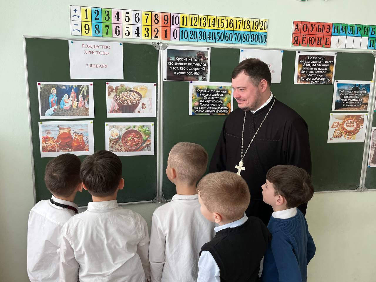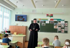 Отец Александр также поведал школьникам о таинстве Крещения. Он рассказал о символике воды, соединении со Христом, значении имени и о том, почему Крещение становится началом христианской жизни.
