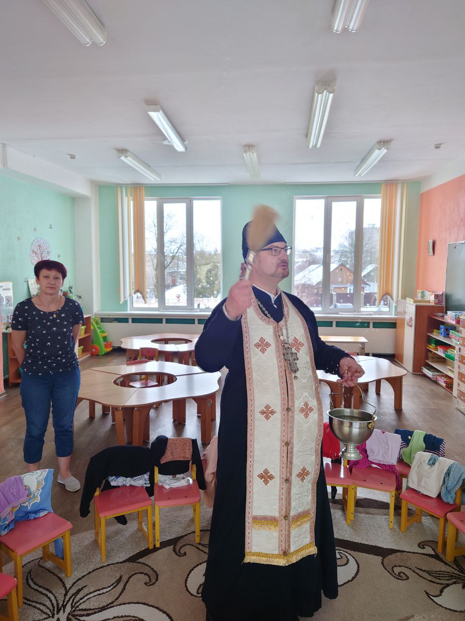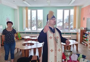 По окончании беседы священнослужитель совершил молебен, после чего окропил крещенской водой воспитанников и помещения детского сада.