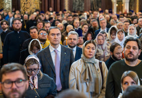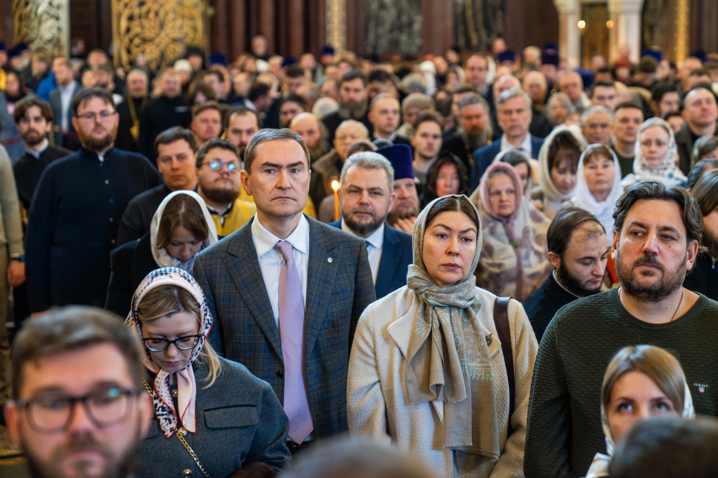 Торжественное богослужение посетили: заместитель председателя Правительства Российской Федерации Д.Н. Чернышенко; заместитель председателя Государственной Думы Федерального Собрания Российской Федерации А.Ю. Кузнецова; министр промышленности и торговли РФ А.А. Алиханов; полномочный представитель Президента РФ в Центральном федеральном округе И.О. Щеголев; председатель Либерально-демократической партии России, председатель Комитета по международным делам Государственной Думы ФС РФ Л.Э. Слуцкий; председатель Комитета Государственной Думы ФС РФ по вопросам собственности, земельным и имущественным отношениям С.А. Гаврилов; губернатор Калининградской области А.С. Беспрозванных; член Совета Федерации ФС РФ А.Г. Ярошук; депутат Государственной Думы ФС РФ, староста Патриаршего Успенского собора в Кремле Н.Ю. Чаплин; руководитель Департамента здравоохранения Правительства РФ И.Н. Каграманян; Герой России летчик-космонавт Е.О. Серова; глава Одинцовского городского округа Московской области А.Р. Иванов; первый вице-президент — финансовый директор, член Совета директоров ПАО «ГМК "Норильский никель"» С.Г. Малышев; первый заместитель генерального директора ОАО «РЖД» В.В. Михайлов; первый заместитель председателя Правления ПАО «Сбербанк» А.А. Ведяхин; вице-президент Российского союза химиков А.Г. Гурьев; президент Российской ассоциации производителей минеральных удобрений, глава российской части Делового совета БРИКС А.А. Гурьев; руководитель ювелирно-художественной мастерской «Апостол» И.С. Харьков.