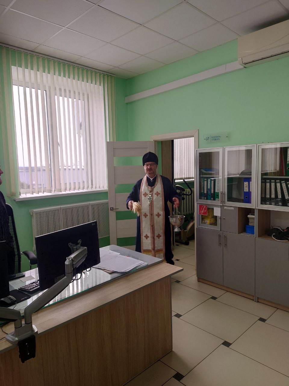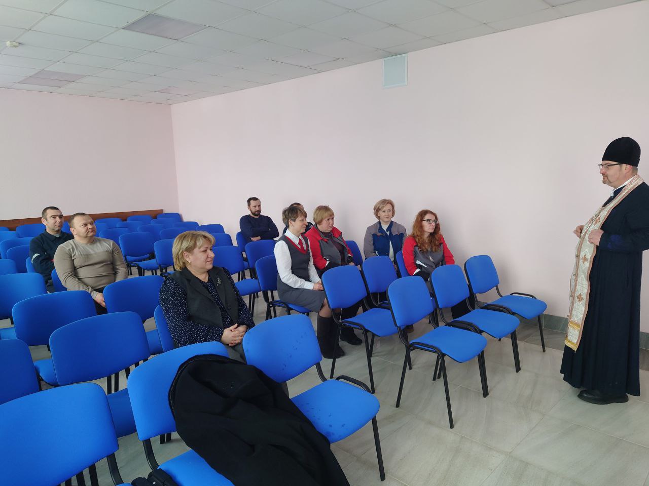 После беседы священнослужитель совершил молебен, после чего окропил крещенской водой присутствующих сотрудников и помещения учреждения.