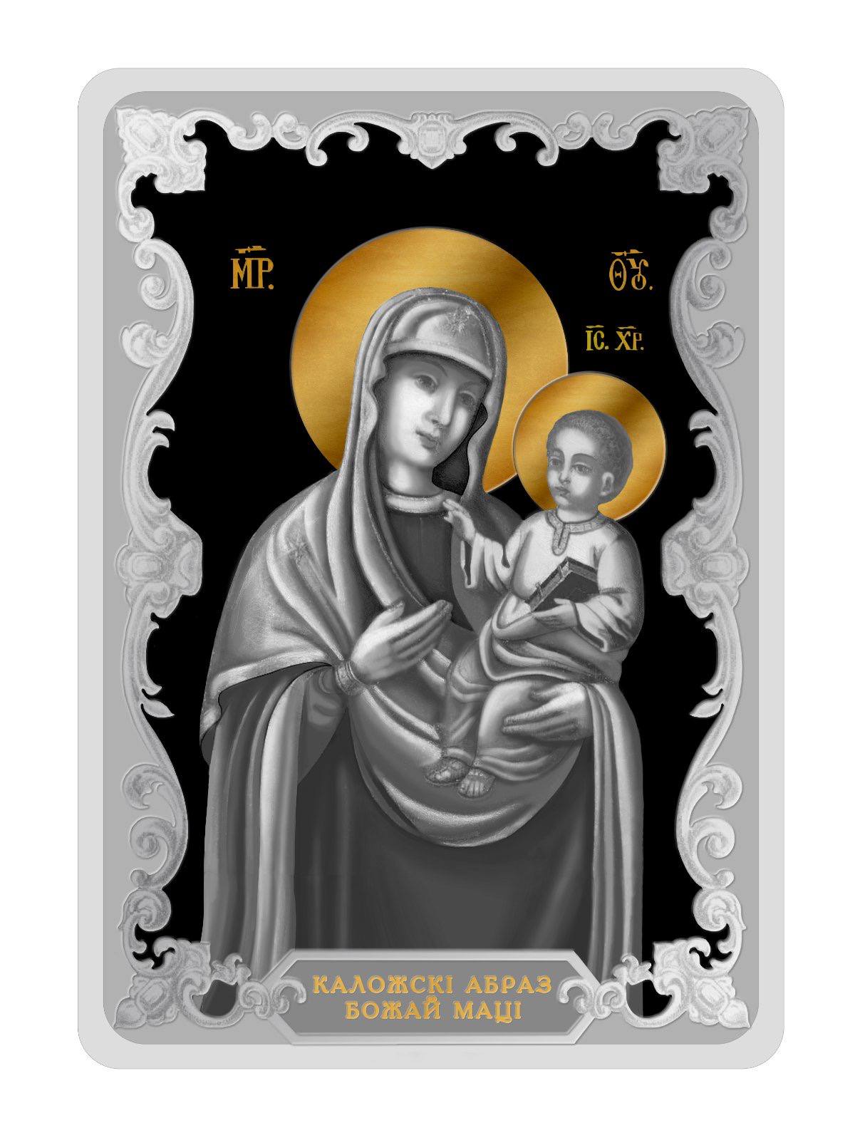 Предполагается выпуск двух видов памятных монет — номиналом в 20 рублей из серебра 999 пробы и медно-никелевой номиналом в 1 рубль. На реверсе (оборотной стороне) монеты будет представлено изображение Коложской иконы Божией Матери и надпись на белорусском языке «Каложскі абраз Божай Маці». Специалисты-медальеры с максимальной точностью постараются наиболее достоверно передать детали иконографии Пречистой Девы. В качестве образца ими используется единственный известный исторический список Коложской иконы, который находится в храме святых мучеников благоверных князей Бориса и Глеба г. Гродно, а также элементы воссозданного по благословению архиепископа Гродненского и Волковысского Антония оклада Коложского образа Пресвятой Богородицы.
