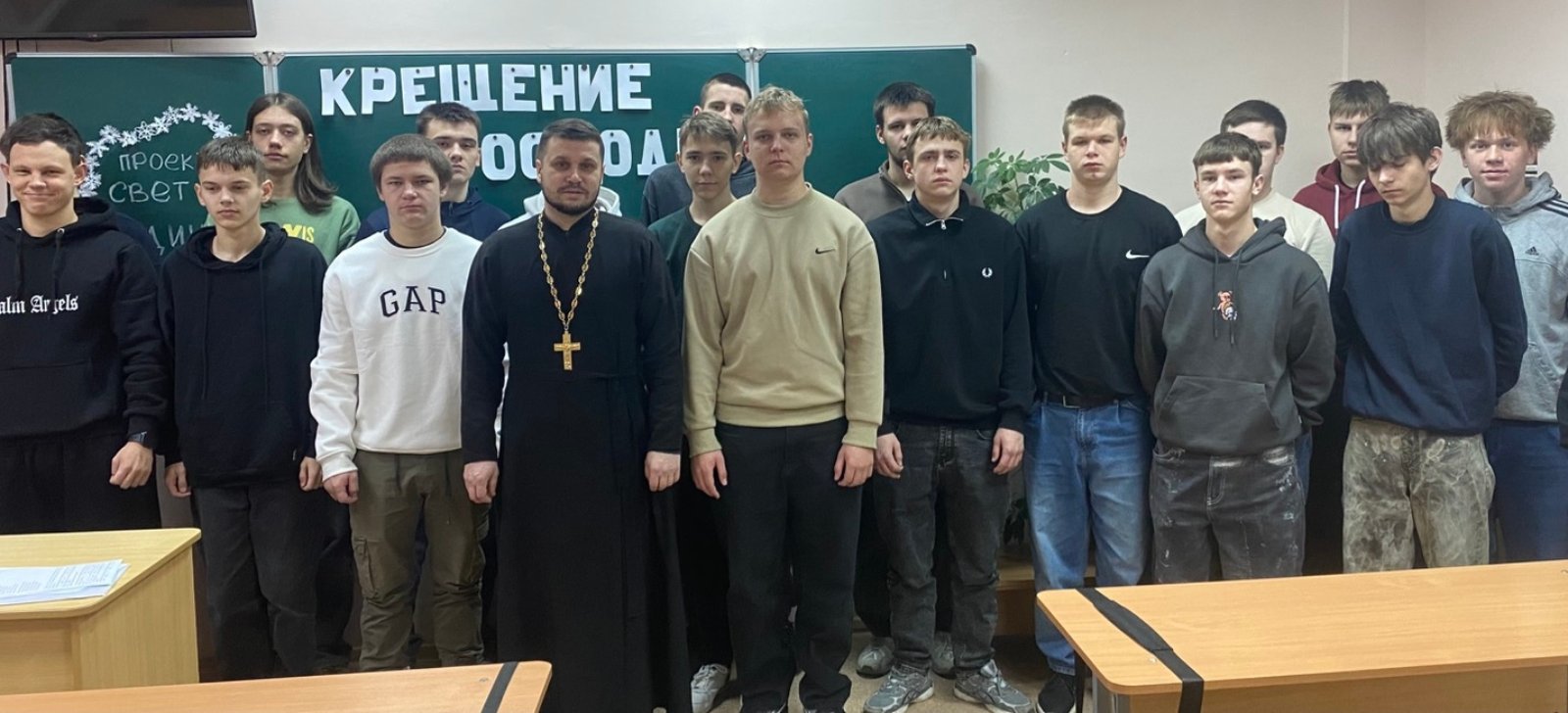 4 февраля в государственном учреждении образования «Скидельский государственный колледж» в рамках проекта «Свет традиций» прошла встреча клирика храма Собора новомучеников и исповедников земли Белорусской иерея Александра Дежурко со студентами. Тема встречи — «Крещение Господне, значение праздника для христианина».