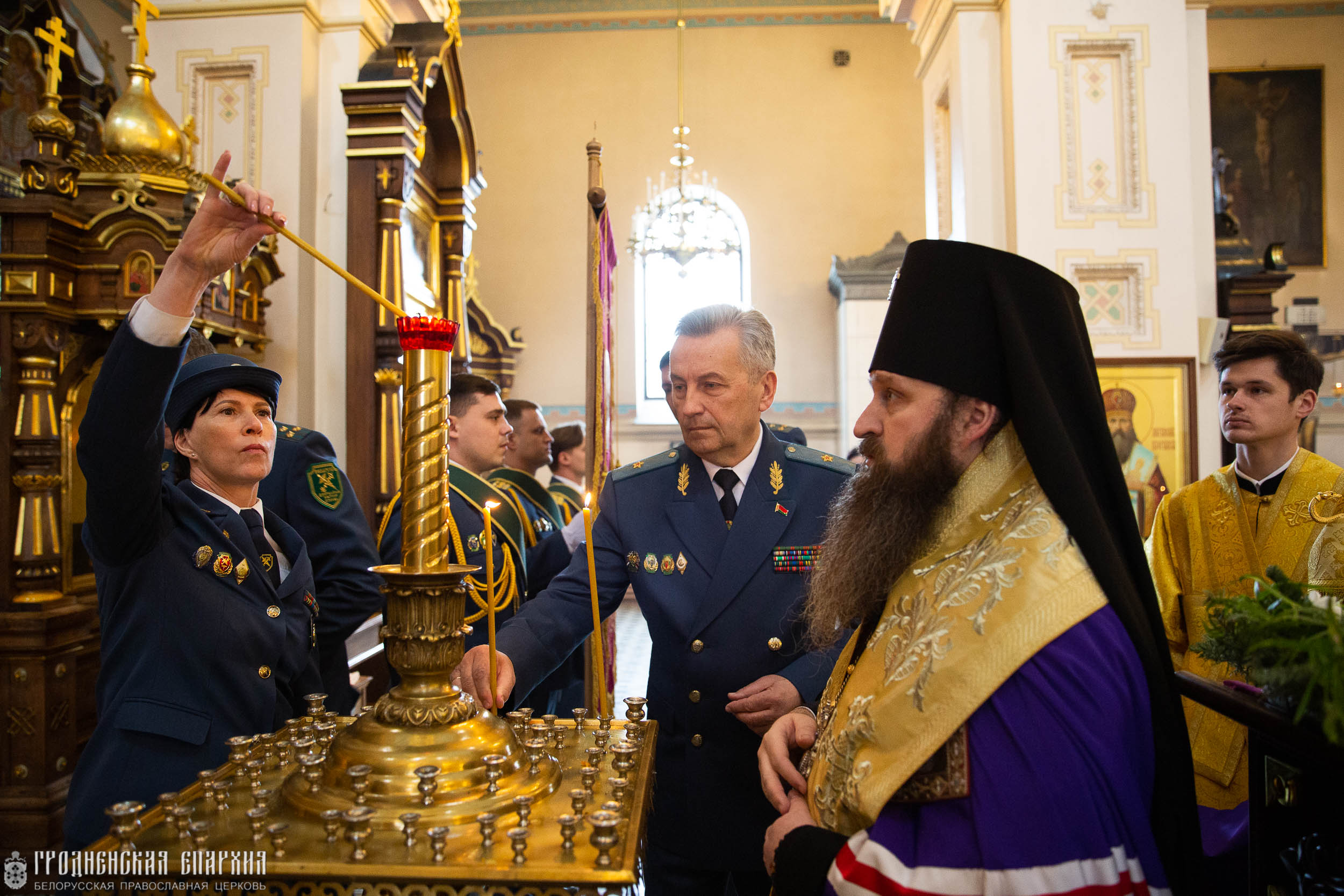На богослужении присутствовал начальник Гродненской региональной таможни Александр Константинович Пихун, сотрудники таможенного ведомства, ветераны службы, студенты специальности «таможенное дело» Гродненского государственного университета им. Янки Купалы, воспитанники таможенных классов средней школы №13 г. Гродно.