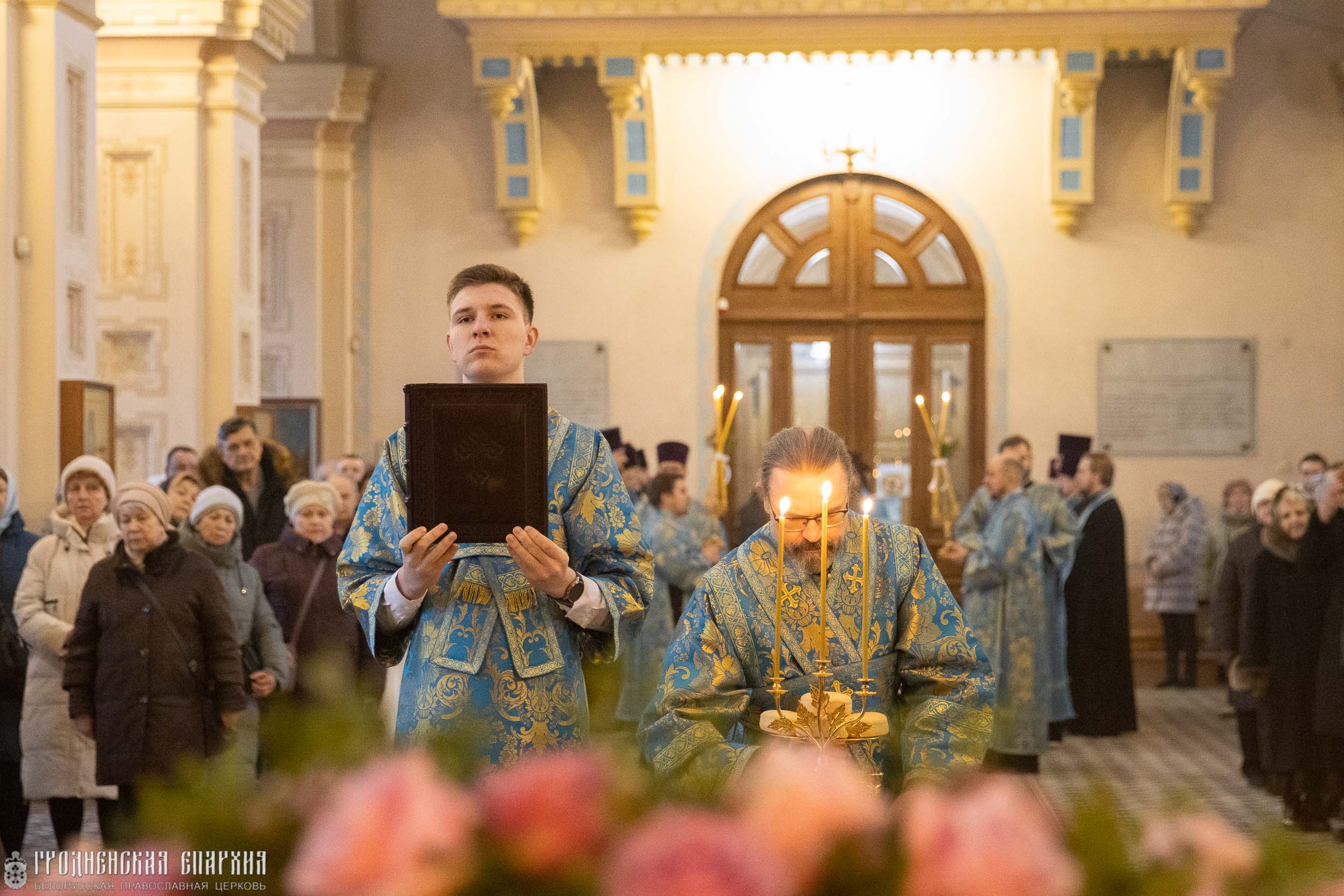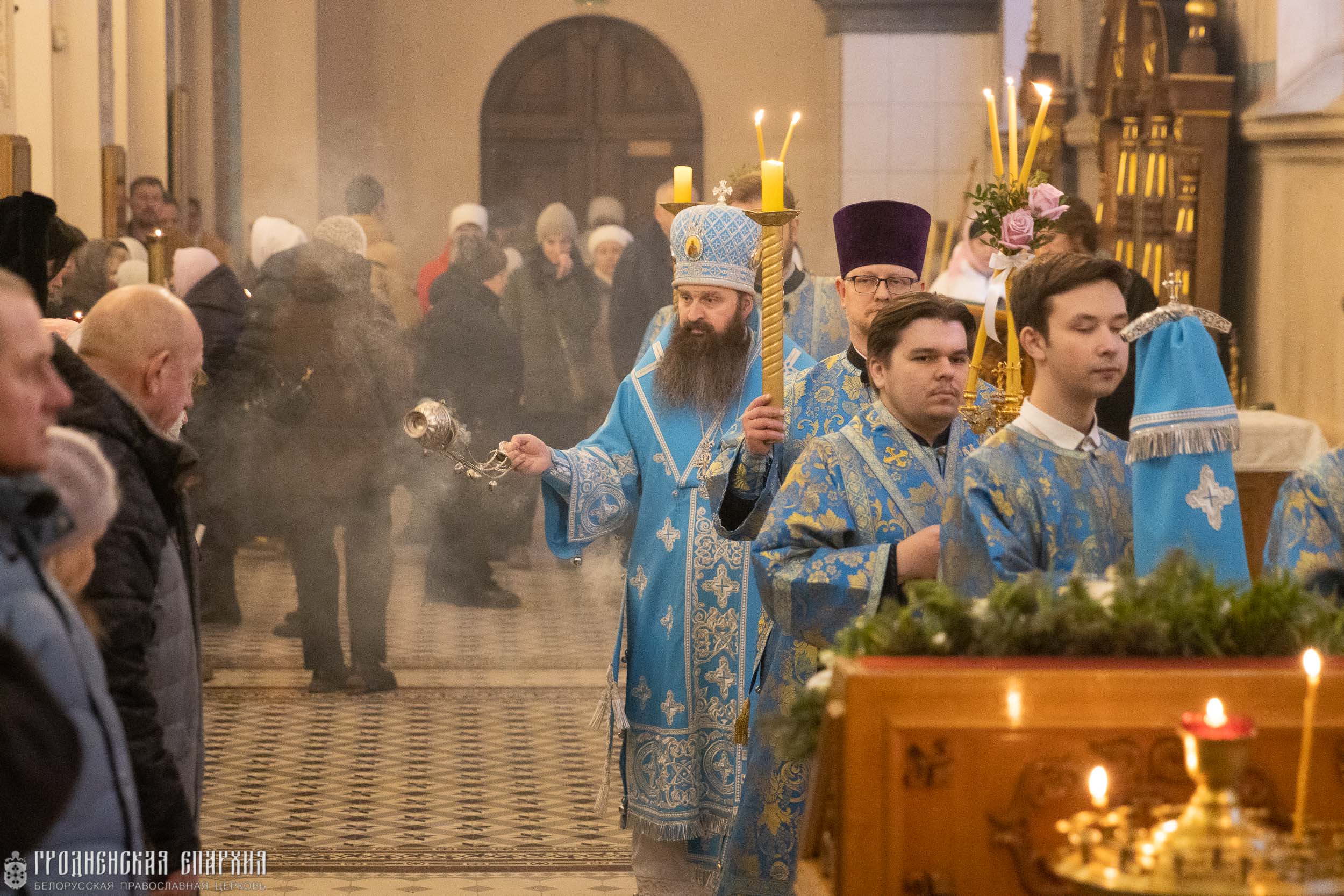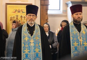 Его Высокопреосвященству сослужили: протоиерей Григорий Беляцкий, настоятель кафедрального собора Покрова Пресвятой Богородицы города Гродно; протоиерей Андрей Бондаренко, духовник Гродненской епархии, иерей Александр Гук, руководитель отдела по церковной благотворительности и социальному служению; клирики кафедрального собор.