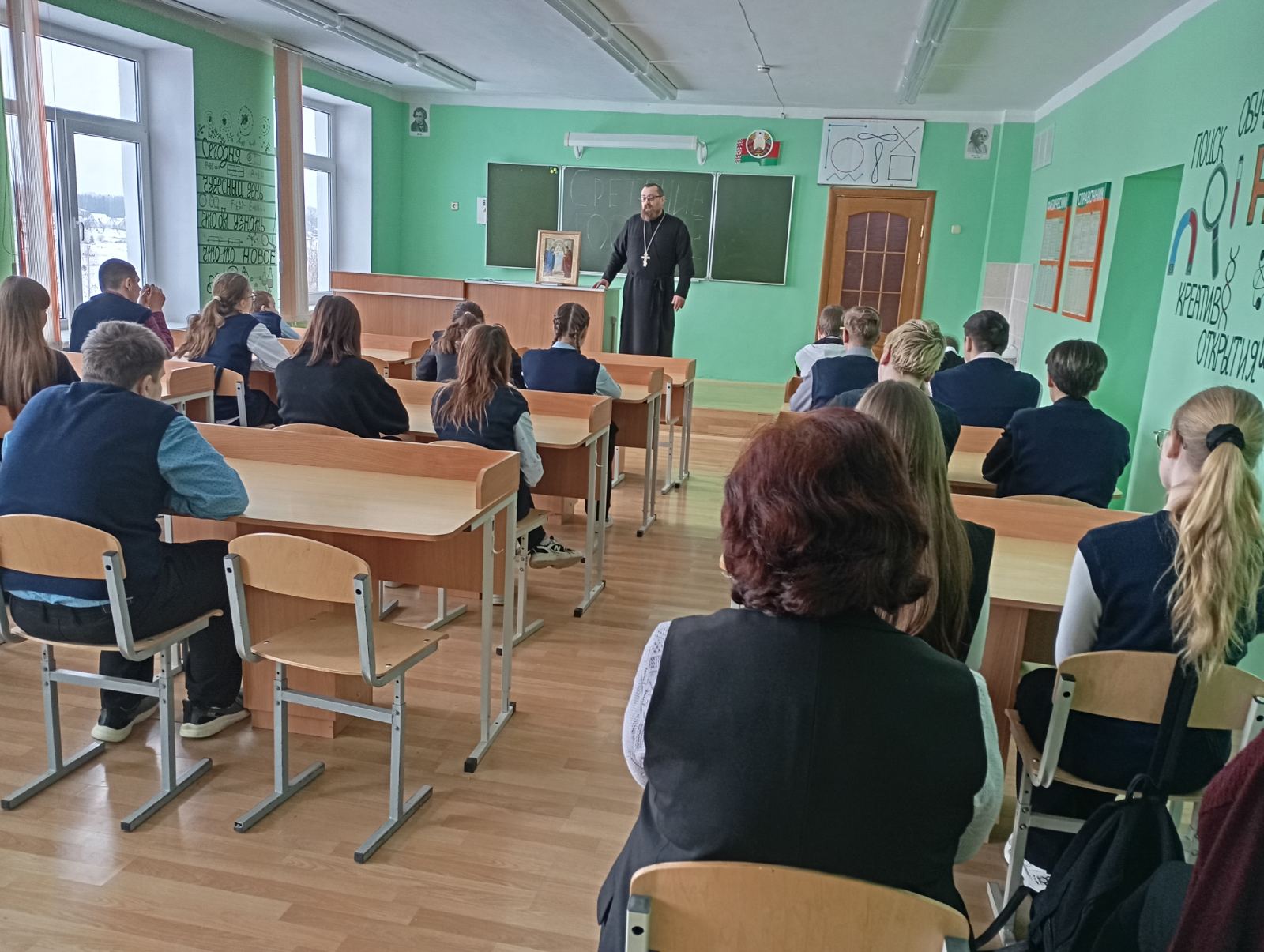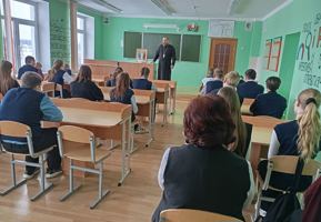 11 февраля настоятель прихода храма Рождества Пресвятой Богородицы д. Мурованка Щучинского района иерей Олег Засим провел беседу с учащимися 8–11 классов государственного учреждения образования «Скрибовская средняя школа».