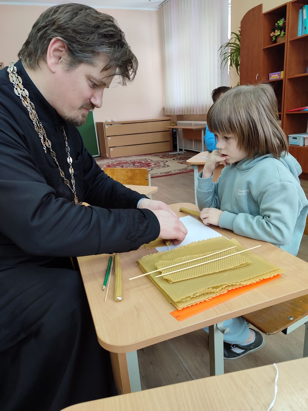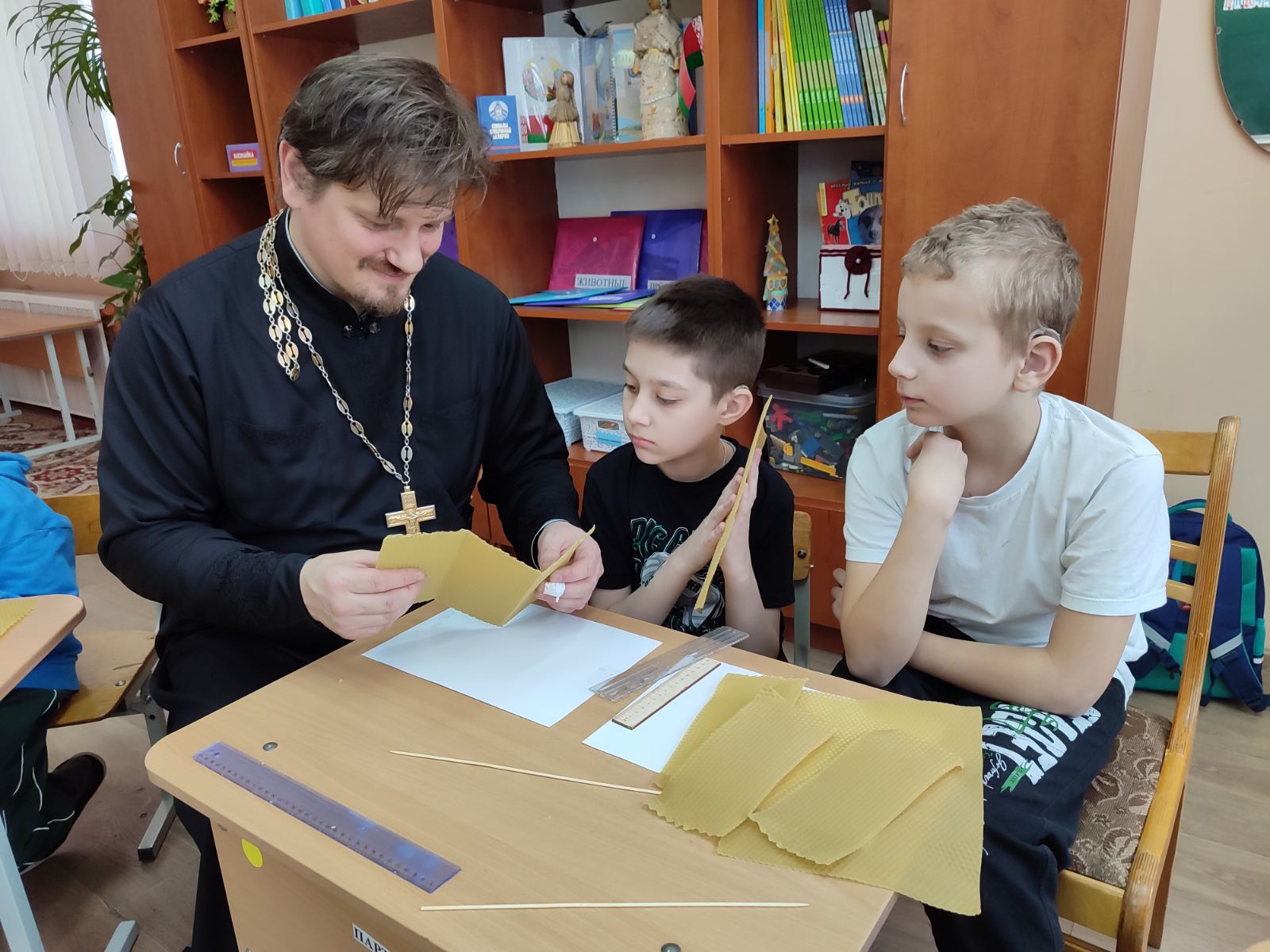 Отец Владимир объяснил, почему мы зажигаем свечи в храме и как это помогает сосредоточиться в молитве, а также продемонстрировал способ самостоятельного изготовления свечи. В практической части занятия учащиеся сами изготовили свечи своими руками, проявив усердие и интерес к теме. Мероприятие способствовало не только познавательному, но и воспитательному эффекту — укреплению духовного опыта детей и развитию ручных навыков.